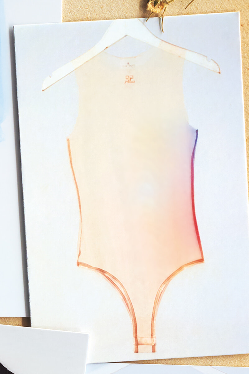 サイドには淡いマルチカラーのグラデーション。セカンドスキンのように肌になじむACロゴ入りのチュールボディスーツ¥84,000/クレージュ(エドストローム オフィス)
