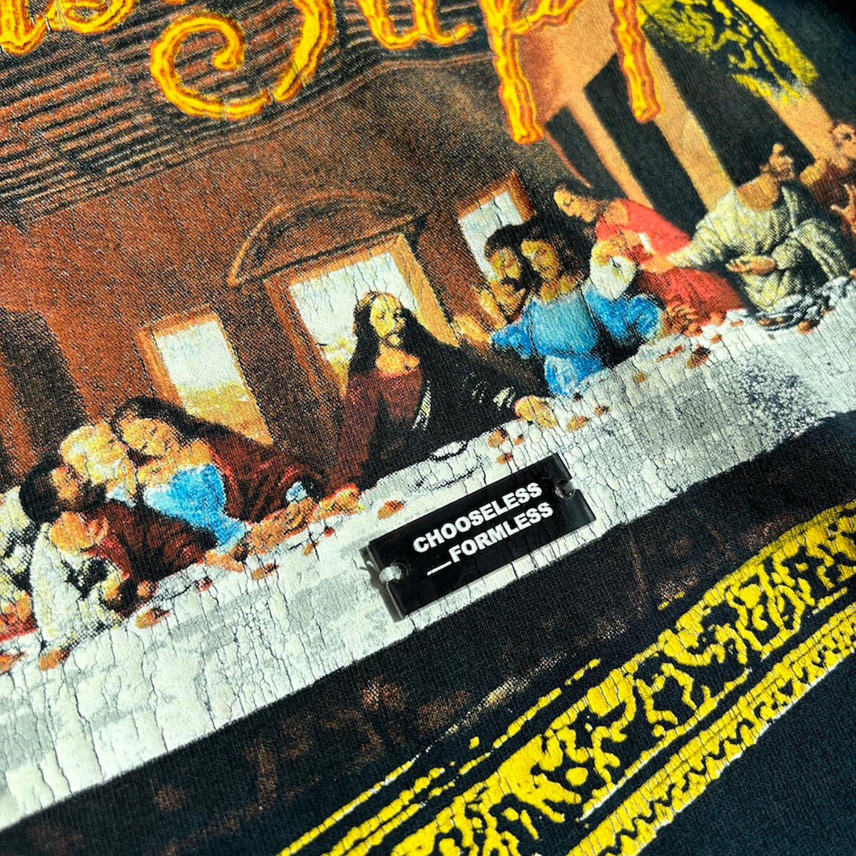 フィガロジャポン7月号のタイ出張の際に、WWAとセレクトショップChooselessが手がける古着屋で買った『最後の晩餐』のモチーフTシャツ。いま、タイの古着が盛り上がっていて、WWAは買い付けた古着や、タイの制服やユニフォームのシャツに、オリジナルのタグを付けてカスタマイズして売っているんです。こちらのTシャツのボディはギルダンで、サイズは2XLと大きめ。ただ、ヴィンテージのプリントTシャツを買う際に、サイズを見ることはほぼなく、そこを気にすることはありません。このTシャツは、プリントのデザインやテーブルの上にタグが乗っているセンスも最高です。普段からサイズ感や素材感などはあまり重視せず、インスピレーションで買う派です。海外の旅先で買いがちなキーホルダーやマグネット感覚に近いかもしれません。
