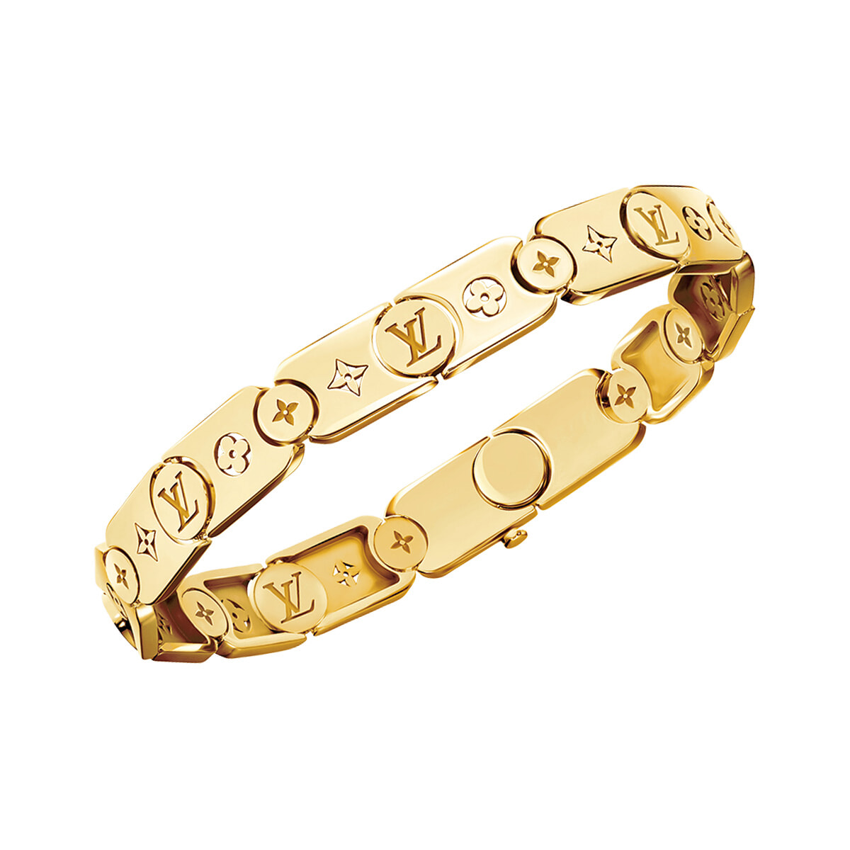 創業者の孫であり、クリエイター兼蒐集家のガストンを讃えて誕生。ブレスレットのパーツにはレーザーカットでモノグラム・フラワーとロゴを刻印。「グルメットブレスレット レ ガストン ヴィトン」(YG)¥1,545,500/ルイ・ヴィトン(ルイ・ヴィトン クライアントサービス)