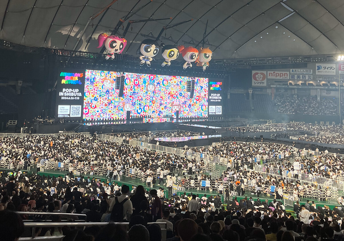 平日の2日間行われたにも関わらず、東京ドームは満席。ライブスタートと主に、NJうさぎのペンライトが会場を光輝かせる。