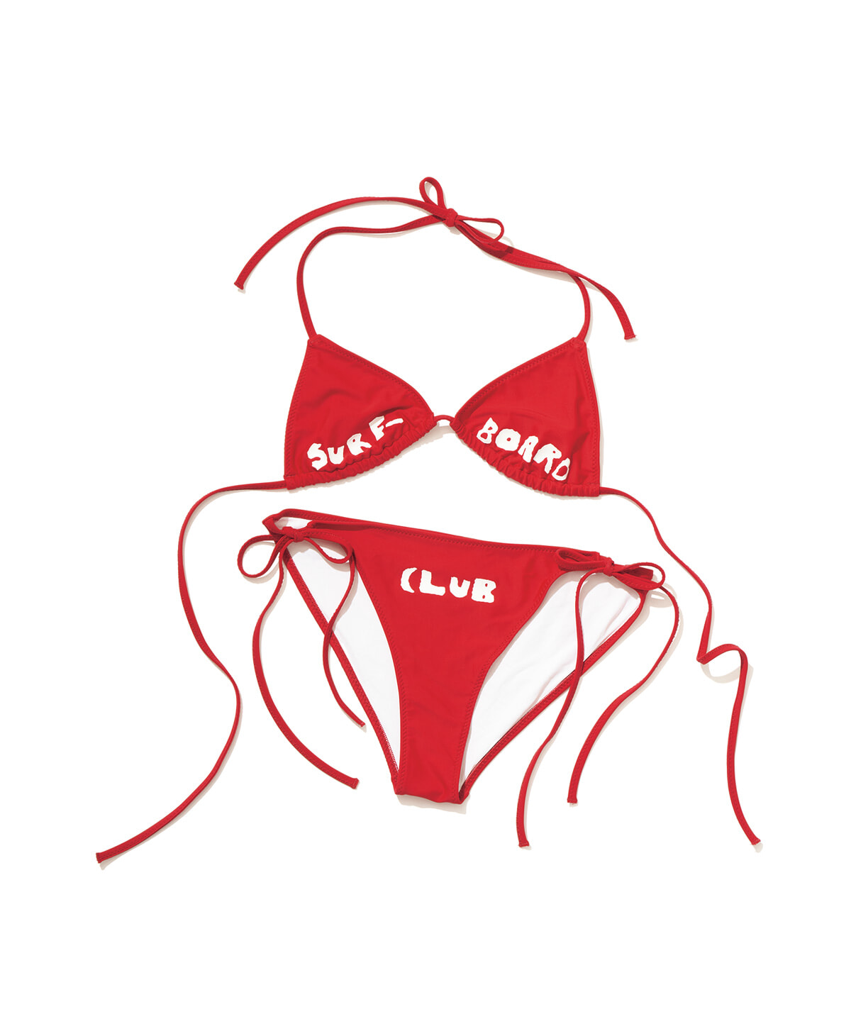 アクネ ストゥディオズの創設者とサーフボードシェイパーのふたりが設立したスウェーデン発ブランド。赤に映えるアーティなロゴがポイントのスイムウエア。トップ¥15,400、ボトム¥15,400/ともにストックホルム サーフボード クラブ(エドストローム オフィス)