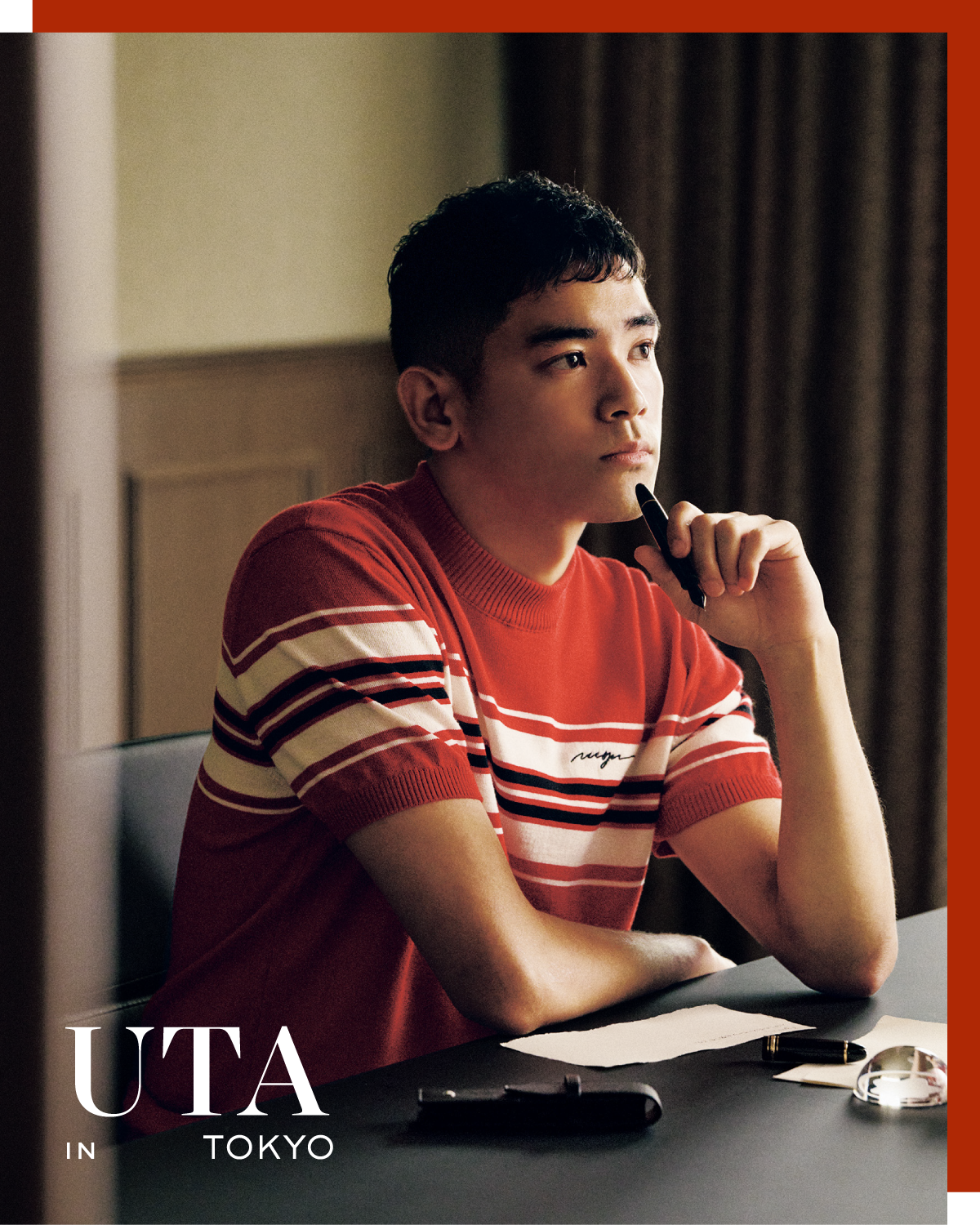 漢字を書くのが不慣れで……と照れながらも丁寧に文字をしたためてくれたUTA。「僕は12歳から海外に留学していたので、日本語で手紙を書く機会が少なかったんですが、今回久しぶりに手書きしたのは新鮮でした。万年筆で妹の名前を書くと、ひと文字ひと文字に重みと温かみを感じますね」