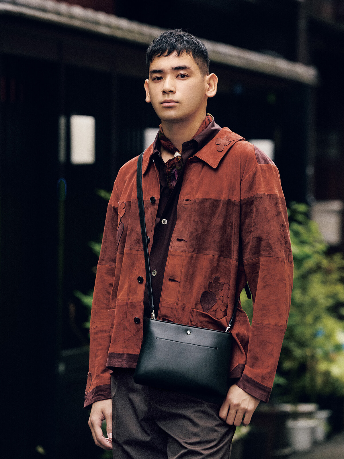 「レザーは長年使っているとだんだん味が出てくる。一緒に成長してくれる素材だと思います」と話すUTAは大のレザー好き。バッグやローファー、レザージャケットなど何年も愛用しているアイテムが多いという。モデルという仕事柄、いろいろな国に出かけることが多いが、ショルダーバッグはその土地のイメージに合わせたものを選んでいる。「たとえばアメリカだったらポップな色のもの、ヨーロッパは歴史のある街並みに合わせたクリーンなものといった具合です。そこにいつものアクセサリーをプラスして自分らしさを出しています