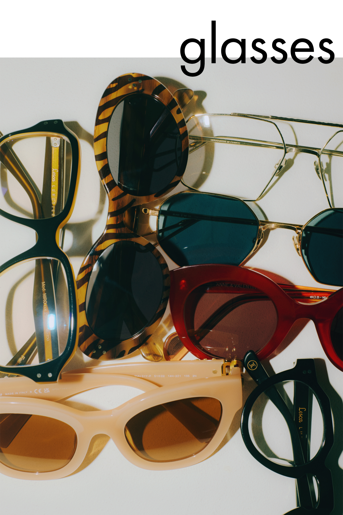 今回集めたメガネフレームも、丸もあれば四角もあったり、フレームが太かったり、メタルフレームだったり。それぞれに確立した個性があるのですが、かけると不思議とシーンに馴染んで引き立つんです。