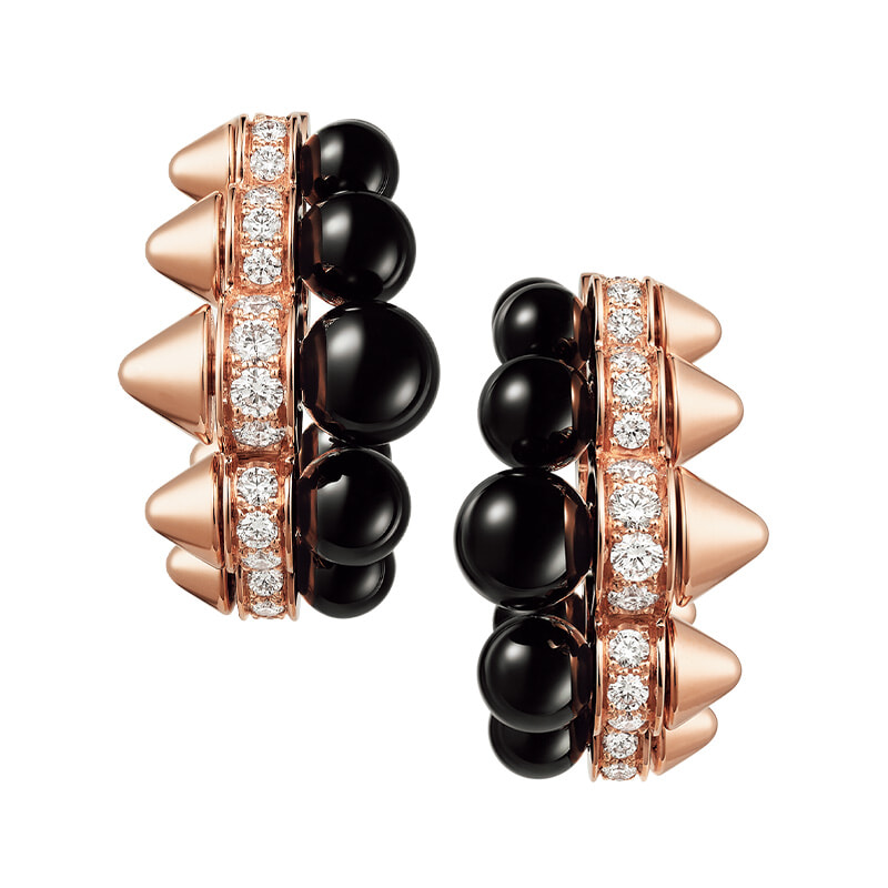 エレガンスとアヴァンギャルドの二面性を持つ独創的なフォルムの「クラッシュ ドゥ カルティエ」イヤリング(PG×オニキス×ダイヤモンド)¥4,461,600/カルティエ(カルティエカスタマー サービスセンター)