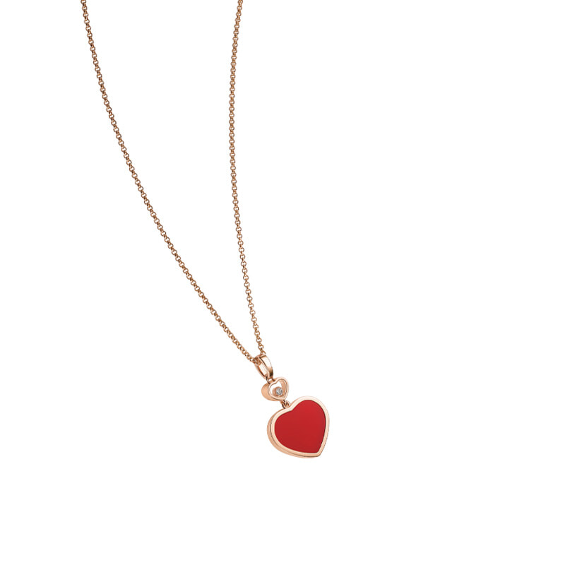 アイコニックなハートモチーフが小さいながらも存在感を放つ「ハッピーハート」ペンダント(エシカルRG×ダイヤモンド×カーネリアン)¥462,000/ショパール(ショパール ジャパン プレス)