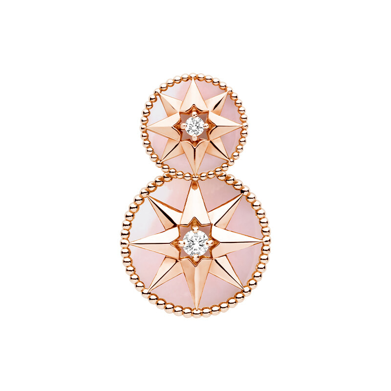 下部はジェムストーン仕様でも身に着けられ、アレンジが楽しめる「ローズ デ ヴァン トライバル」シングルピアス(18KPG×ダイヤモンド×ピンクオパール)¥840,000/ディオール ファイン ジュエリー(クリスチャン ディオール)