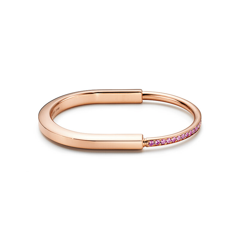 “繋がり”と”受け入れる心”から着想を得た、タイムレスな「ティファニー ロック」バングル(18KRG×ピンクサファイア)¥2,365,000/ティファニー(ティファニー・アンド・カンパニー・ジャパン・インク)