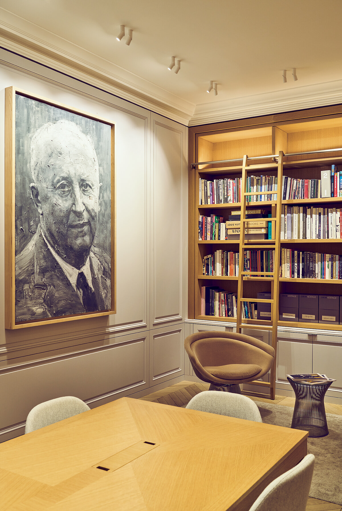 クリスチャン・ディオールの著作からクリエイティブチームのためのアートやデザイン本までを収めた図書室。