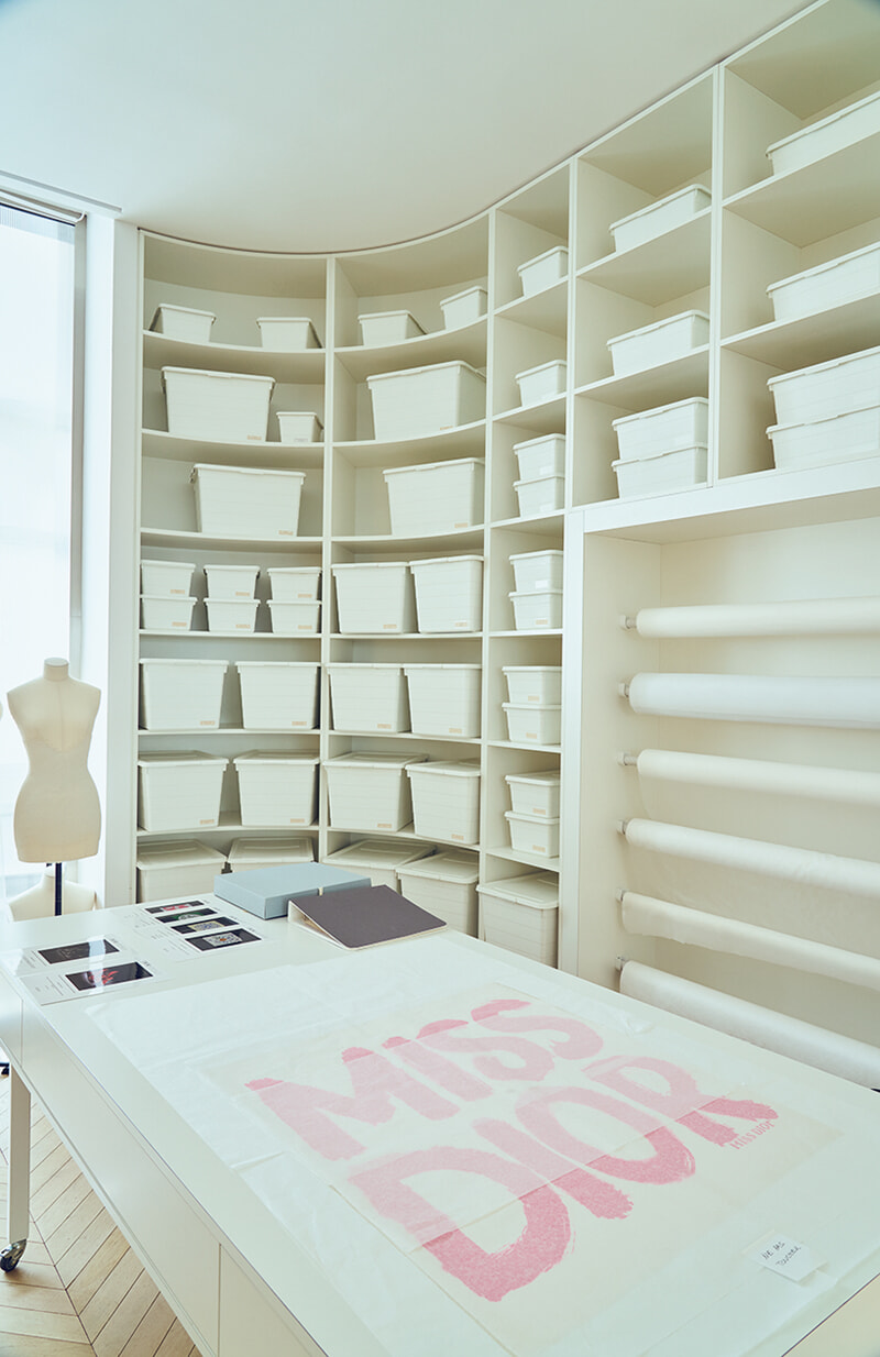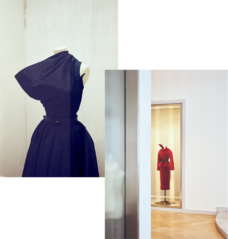 「ディオールの歴史に触れ、ソアジックさんのムッシュへの愛を感じて、さらに興味が深まりました」と綾瀬。顧客に愛用され、買い戻されて、職人の手で修復されて眠る過去のコレクションは、さまざまな展覧会で世界中の人に夢を与え、メゾンのインスピレーション源となって現代に蘇る。