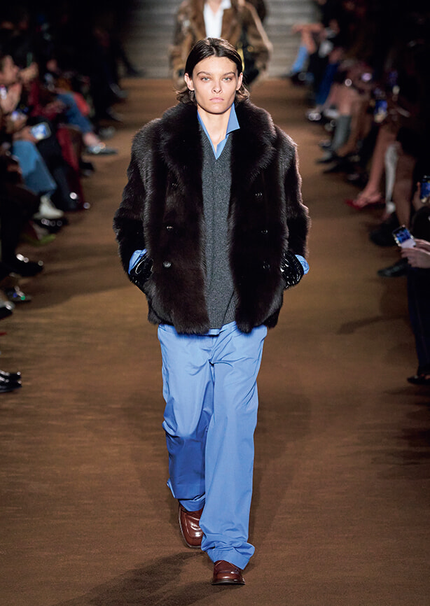 シャツ¥181,500、パンツ¥146,300(すべて予定価格)/以上ミュウミュウ(ミュウミュウ クライアントサービス)
