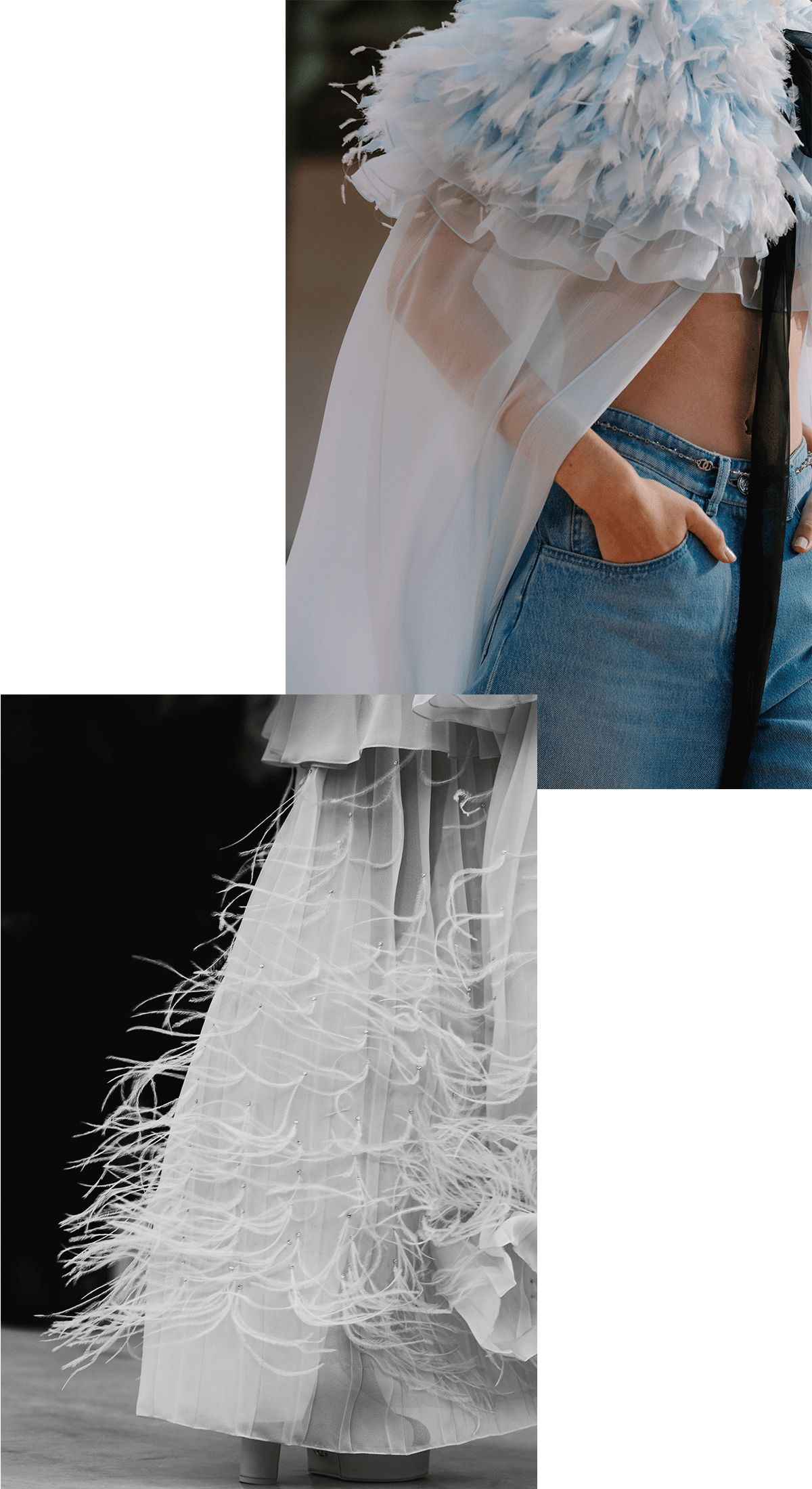 繊細さや軽快さ、そして美しい動きを賛美するバレエのエッセンスを感じさせるクリエーションが目を引いた今季。シフォンのケープ、スリットの入ったスカート、透け感のある素材に刺繍を施したシャツドレスなど、ライトな着心地が春夏らしい。さらに色とりどりの羽根がプリントされたトレンチコートやスパンコールやフリンジを施したジーンズなど、心踊るようなピースも見逃せない。