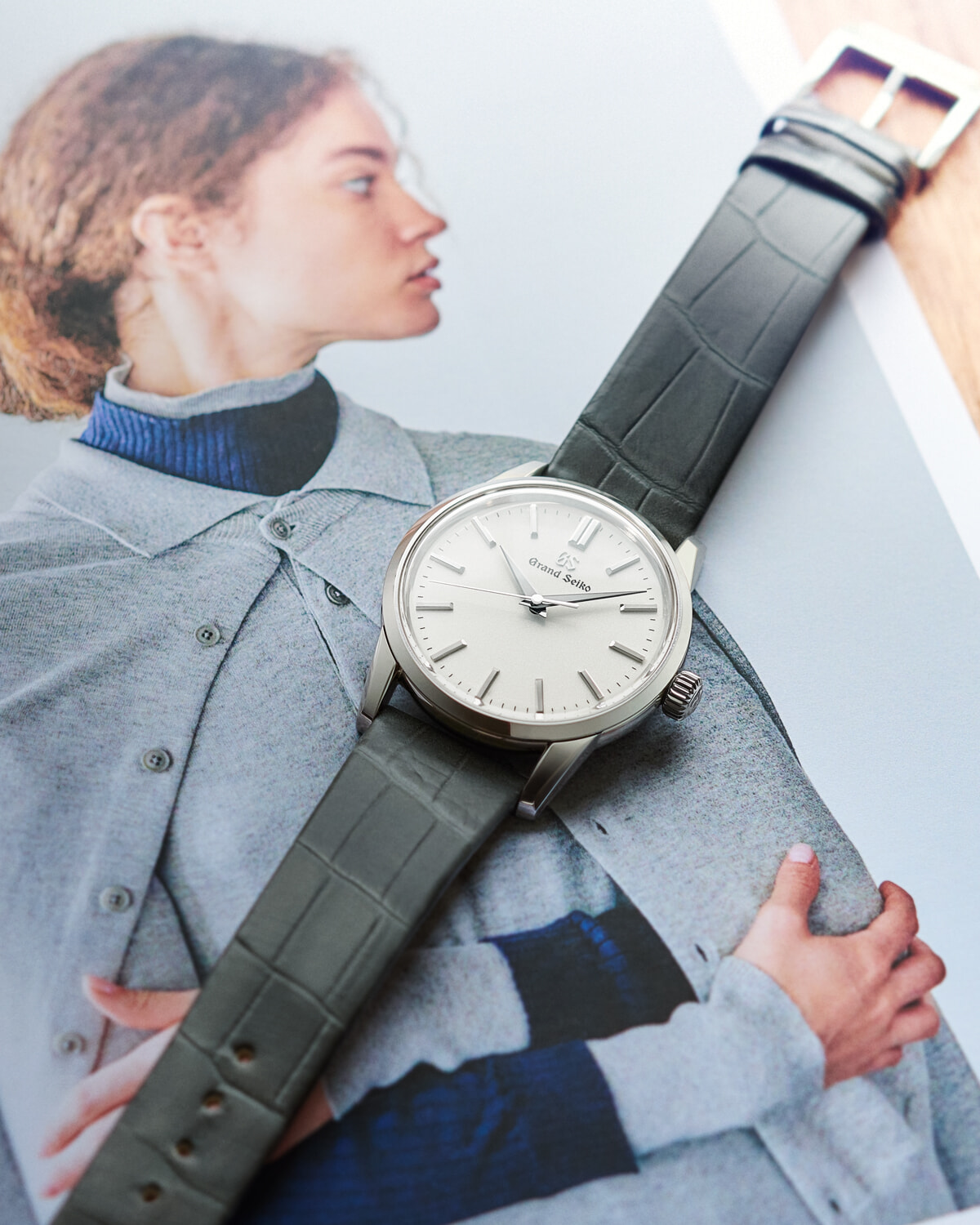 来る冬、柔らかな肌触りが心地いいニットの意外なレイヤード。それには、クラシカル、かつマニッシュな存在感の腕時計を合わせたい。グランドセイコーの「エレガンスコレクションSBGX347」は直径34mmのミッドサイズが、女性の腕にもなじみ良い腕時計。ダイバーシティの時代にもふさわしいこの絶妙なサイズ感が、シンプルなデザインを魅力とするドレスウォッチのコードを継承しつつ、決して重くなりすぎない、自立した女性の自由な雰囲気を手元へと与える。グランドセイコーの腕時計は、”グランドセイコースタイル”という、平面と平面、それらを繋ぐ稜線を主体とする独自のデザイン文法に基づくもの。そんな完成度の高いデザインをさらに美しく見せるのが、グランドセイコー伝統の”ザラツ研磨”だ。歪みのない面を形成する手の込んだ仕上げが、腕時計のミニマムなフォルムに深みある表情を導き出す。細部へとこだわる職人技が、ニットとの合わせ技が見せるプレイフルなスタイリングの中に洗練のタッチをも添えるに違いない。