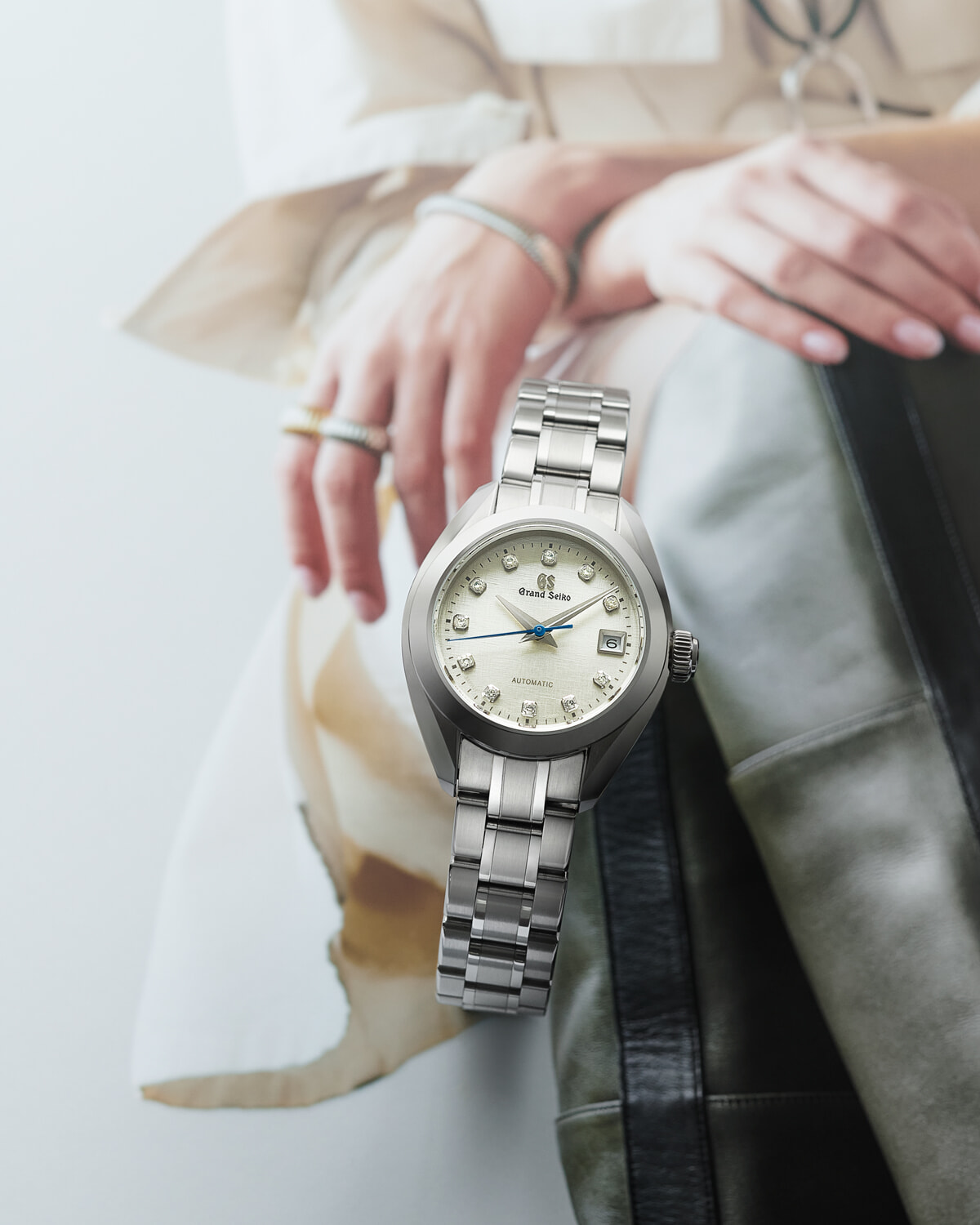 遠くから見ても、その人の、手元の美しさが凛と薫り立つーー主張しすぎず、しかし内から滲み出るような輝きで、身に着ける女性の内面までをも美しく彩るのが、グランドセイコーの腕時計だ。