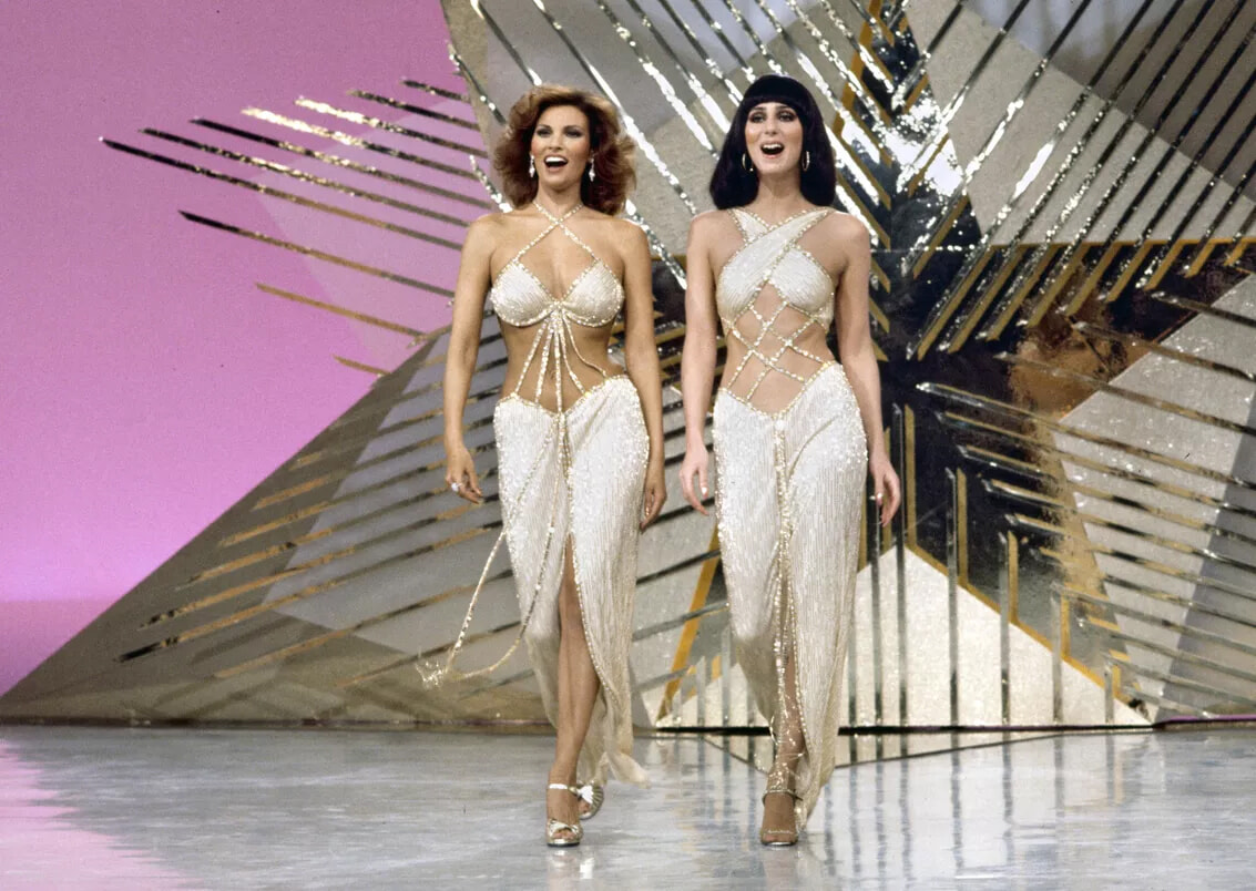 CBSで放送された番組「シェール」でパフォーマンスを披露するラクエル・ウェルチとシェール。(ロサンゼルス、1975年2月16日)photography: CBS Photo Archive / CBS via Getty Images