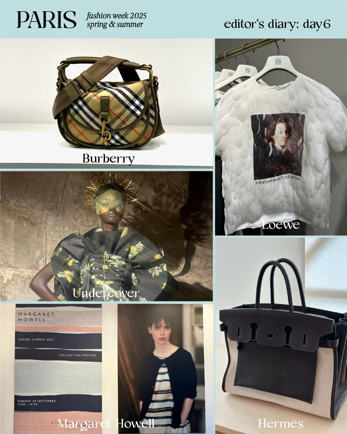 ReSeeやプレゼンテーションスタイルの展示会も期待のブランドばかりが揃った9月29日。アンダーカバー、バーバリー、ロエベ、エルメス、マーガレットハウエルを訪れた。