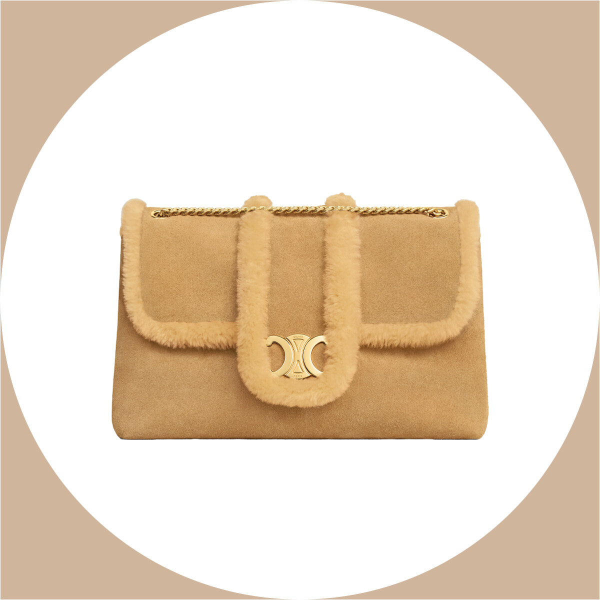 スエードのカーフスキンとふかふかとしたシアリングの組み合わせが愛らしい「セリーヌ ヴィクトワール 」の新作。ライニングにもシアリングが施され、厳しい寒さから大切な荷物も守ってくれそう。