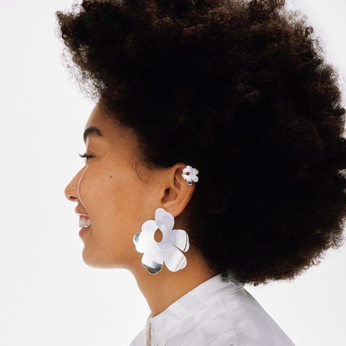 アイコニックな「ウニッコ」柄がモダンなジュエリーに。ピアス¥96,000、イヤーカフ¥32,000(ともに予定価格)/ともにカレワラ