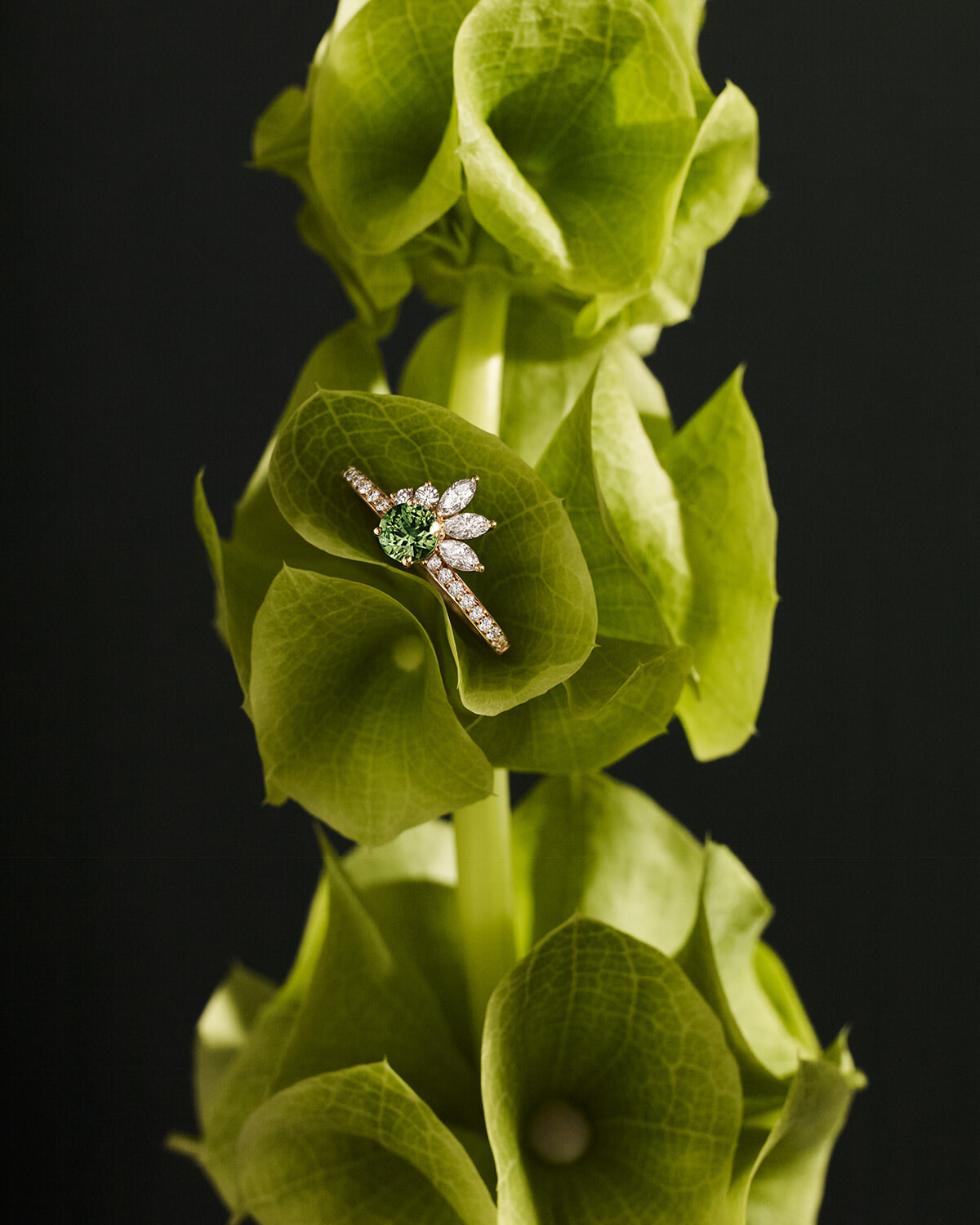 日常の中でエンゲージリングとしてもファッションリングとしても楽しめる「エバーブルーム」。満開の花園の詩的な美しさを表現したリングは、メインストーンに添えられたさまざまなシェイプのダイヤモンドが花びらのように広がり、年齢を重ねながら開花していく花嫁の人生を連想させる。繊細でありながらジェミオが誇る職人の手による確かなつくりで、毎日、そして一生身につけ続けることができるはず。