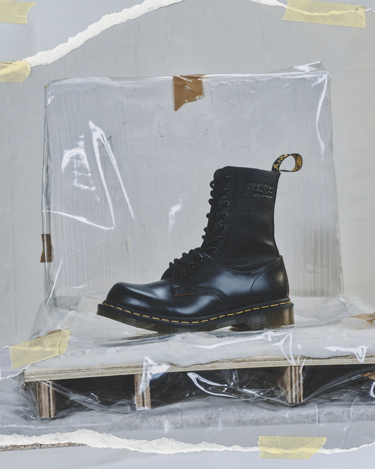 クラシックなシルエットに、斬新なフォルムを生み出すデザインの融合が特徴的なこのコラボレーションは、伝統的なデザインを探求し、覆すという共通の目標に基づいて実現したもの。それぞれのシューズはふたつの異なるデザインの言語を通して、クリエイティブなプロセスを明示し、それらが融合され、共通のアーティスティックな表現を生み出している。本コレクションは、ドクターマーチンの4つの主要なデザインーーアイコニックな1460ブーツ、10ホールの1490ブーツ、1461シューズ、ペントンローファー、を再構築し、エムエム6らしい解釈を加えた3つのハイブリッドシルエットが作られた。