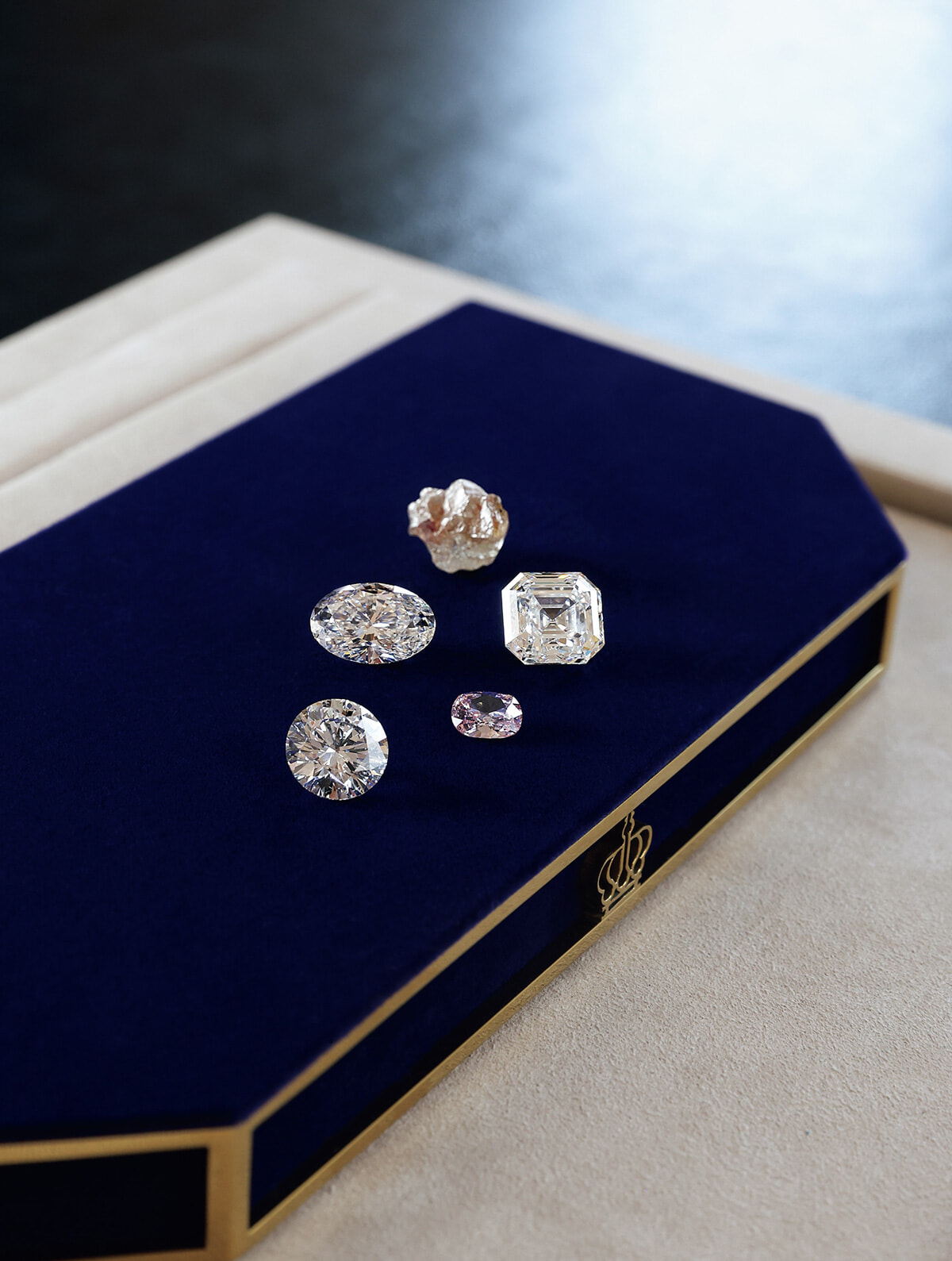 現在は国際パテントを持つ4つのオリジナルダイヤモンドカットに加え、5つ目の新しいカット「ロイヤル・アッシャー・ペアシェイプカット」が加わったという。