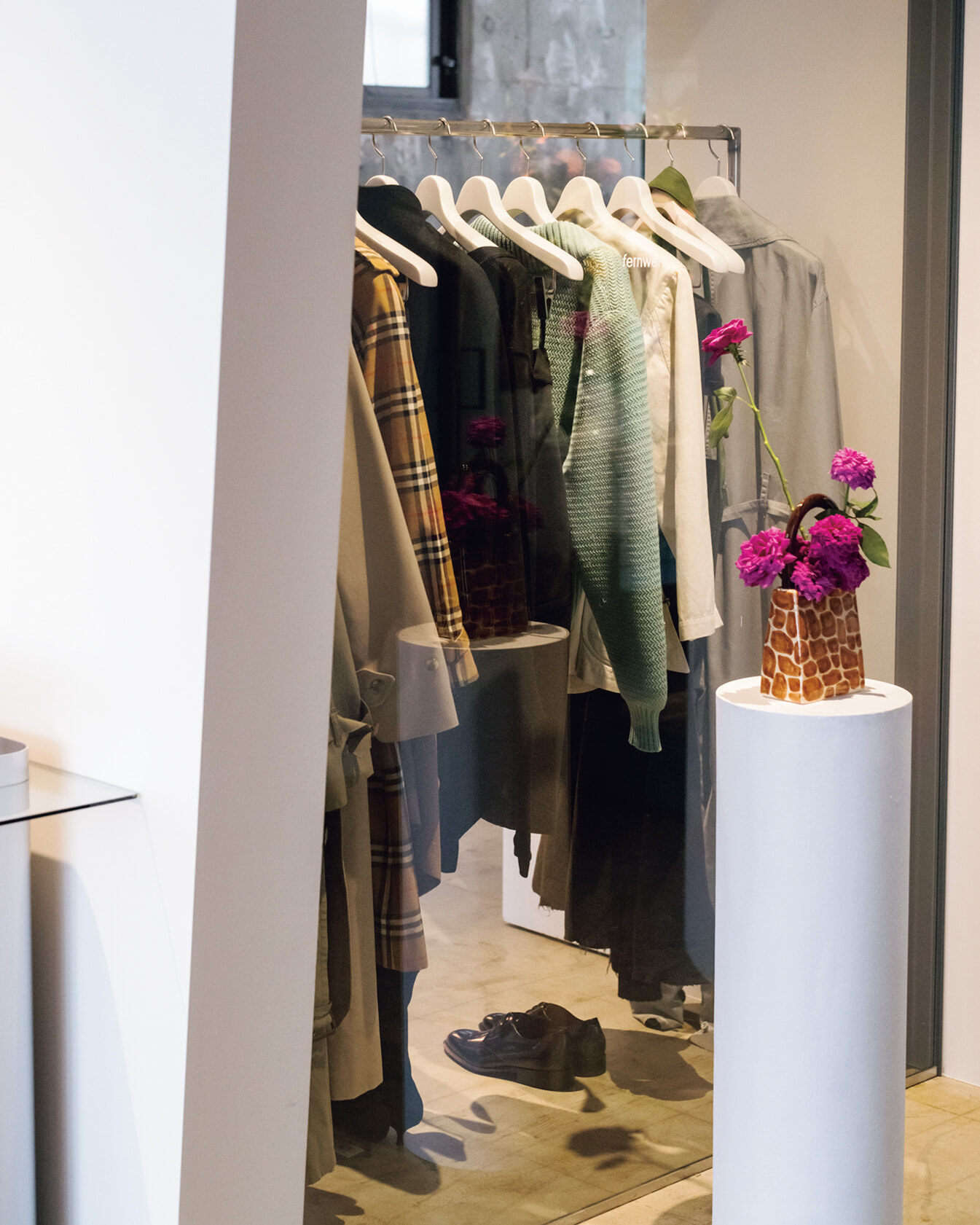 下北沢の人気店「カルマ」のクローズ後、溝口翼が新たに自身のショップをオープンしたのは2023年。「買い付けはほとんど海外で行っていたのですが、それすらままならないフラストレーションがすごく強かった」というコロナ禍を経て、ドイツ語でホームシックの反対語に当たる”fernweh”と名付けた。そんな思いを解放したかのように、同店のすべてにおいて彼の個性が色濃く反映されている。
