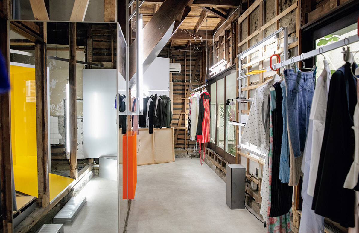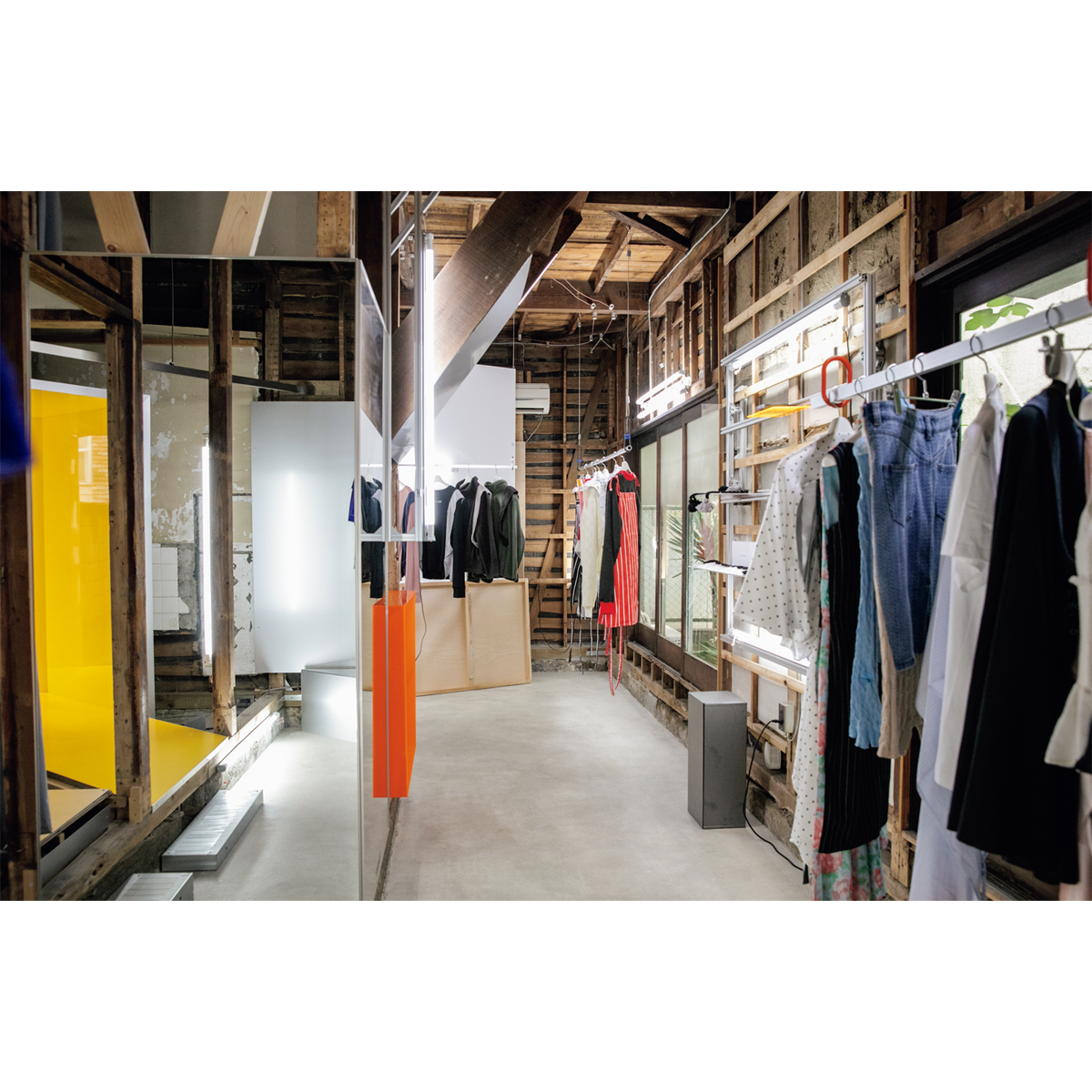 「旗竿敷地特有の、店に辿り着くまでのアプローチが気に入った」という細い路地を進んだ先に突如現れる黄色い入口、そしてその先に広がる西脇だけの宇宙。代々木の住宅地にひっそりと佇む古民家を改装した実験的なスペースから、停滞中とも言われるファッションシーンに新風を吹かせる。