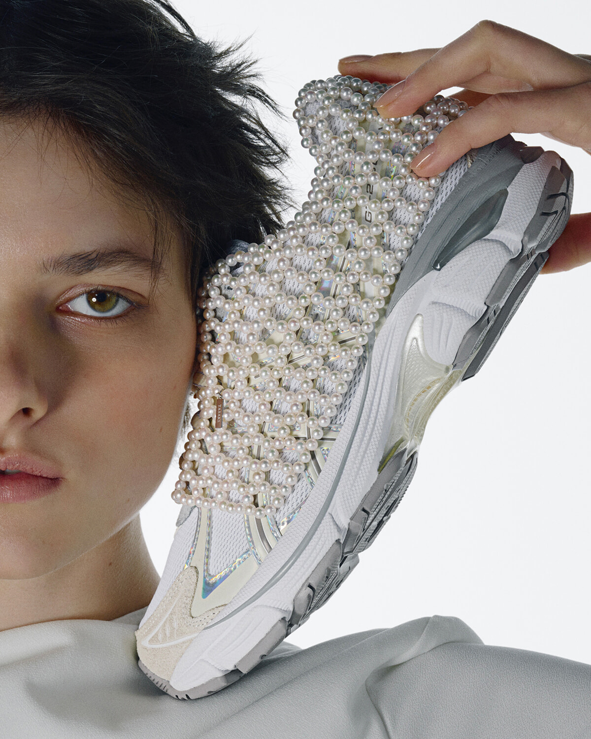 会場で展示販売されているのは、真珠にゴールドの牙をあしらった「デインジャー」など、クラシックなイメージに傾きがちな真珠のイメージを覆すモダンなデザイン。また70周年を記念したコラボレーションアイテムであるスニーカー、アイウェア、イヤホンも披露された。