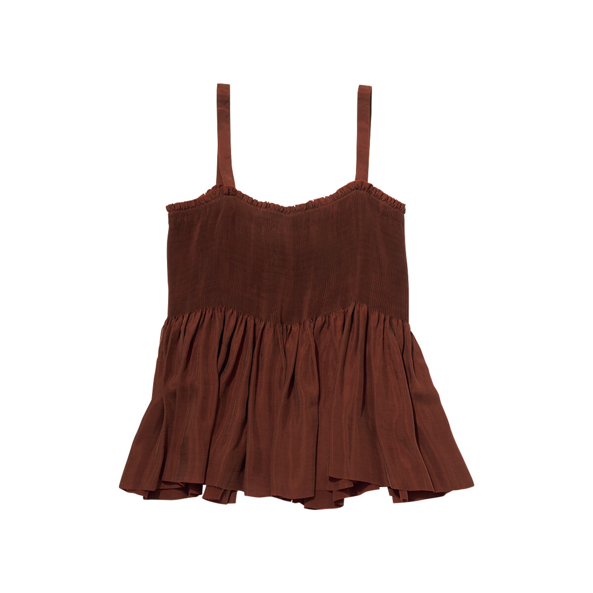 定番色ブラックを、今季のトレンドカラーのブラウンにシフト。ベーシックの延長でも気分が変わるので、新しいコーディネートが可能に。