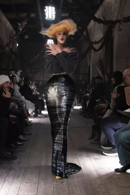 そして、アレクサンドル3世橋のたもと、ベルエポックを再現したビストロで披露された2024年アーティザナルコレクションで、ジョン・ガリアーノは間違いなく彼の最高傑作のひとつを作り上げた。その衣服、アクセサリー、コルセットだけでなく、フィルム・ノワール風の演出やメイクアップアーティストのパット・マクグラスによるモデルの顔を陶器のように覆うメイクアップも歴史に爪痕を残し、複数のソーシャルトレンドにも影響を与えた。滅多に見ることのできないスタンディングオベーションを彼にもたらしたこの見事なショーは、メゾン マルジェラでの彼の仕事の集大成のように見えた。まさに去り際にふさわしいものであった。