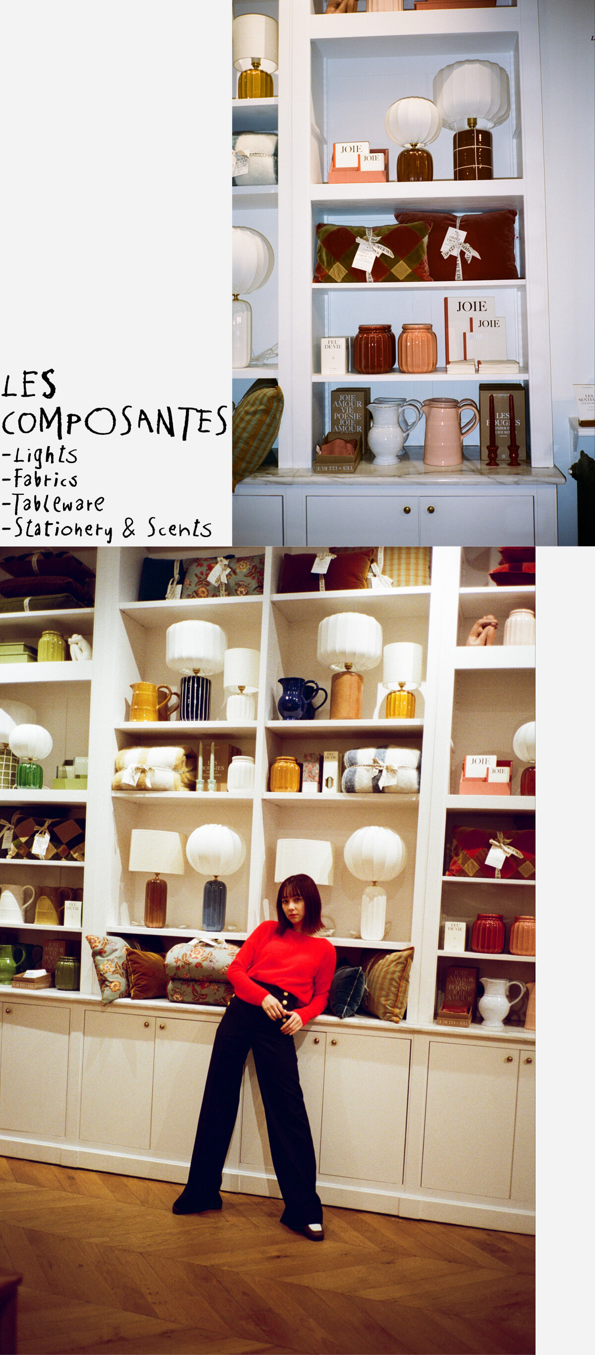 ファッションだけではなく、日々の暮らしが豊かになるインテリアやライフスタイルグッズが手に入るのも、セザンヌでのショッピングが心躍る理由。ライフスタイルブランド「レ・コンポーザント(Les Composantes)」では、クッションやランプ、フラワーベースなどがラインナップし、モルガンがセレクトしたヴィンテージアイテムも並ぶ。オンラインでは購入できないアイテムもあるので、パリを訪れた際はぜひ店舗に足を運んでほしい。