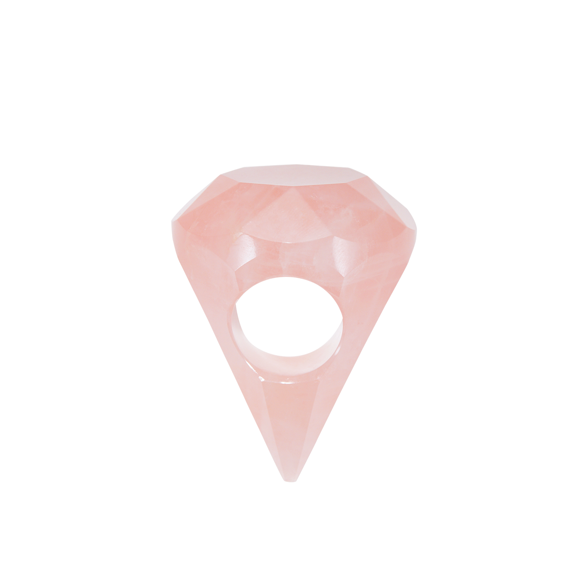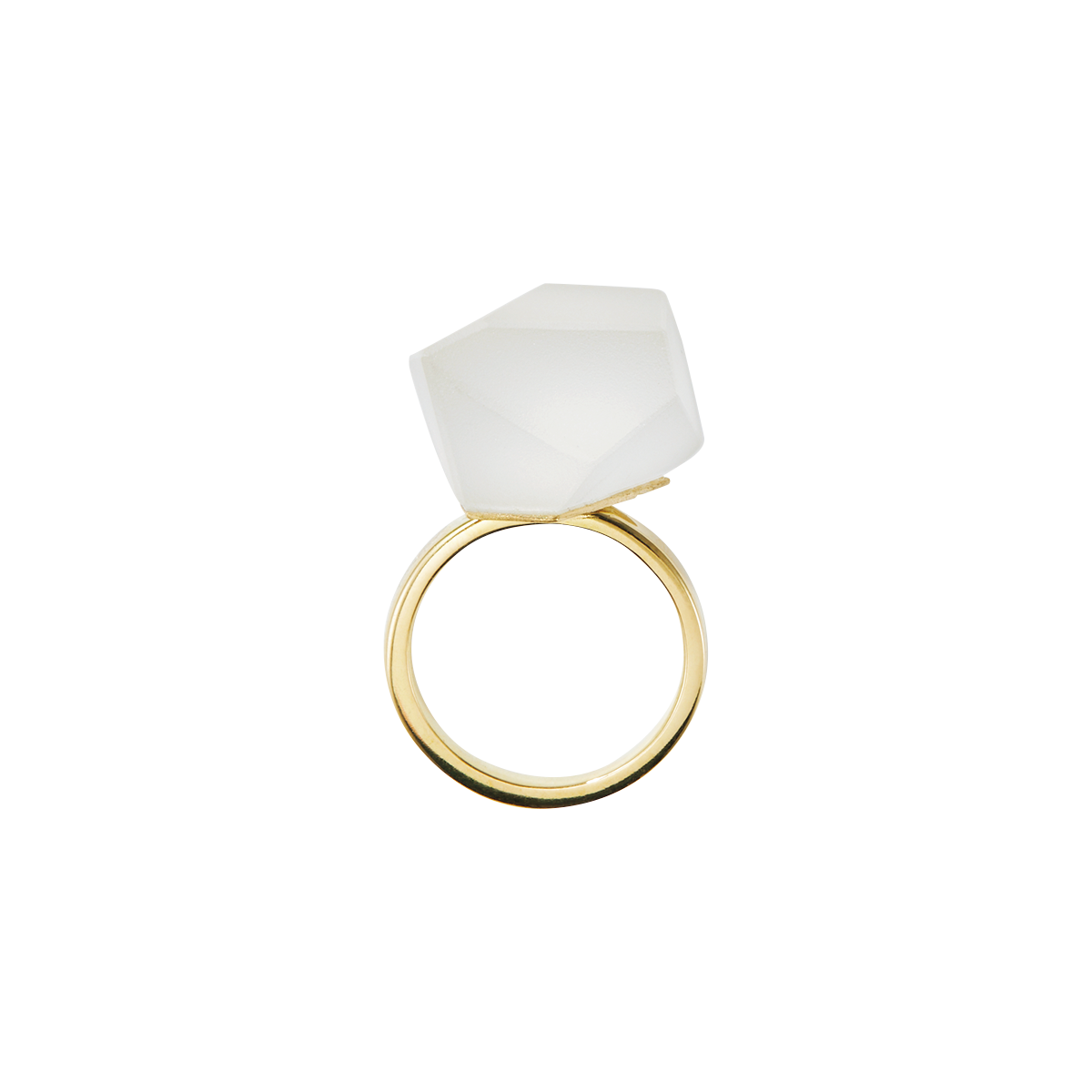 職人の手により、水晶を不定形にシャープに多面カットし、あえてマット加工を施したリング。