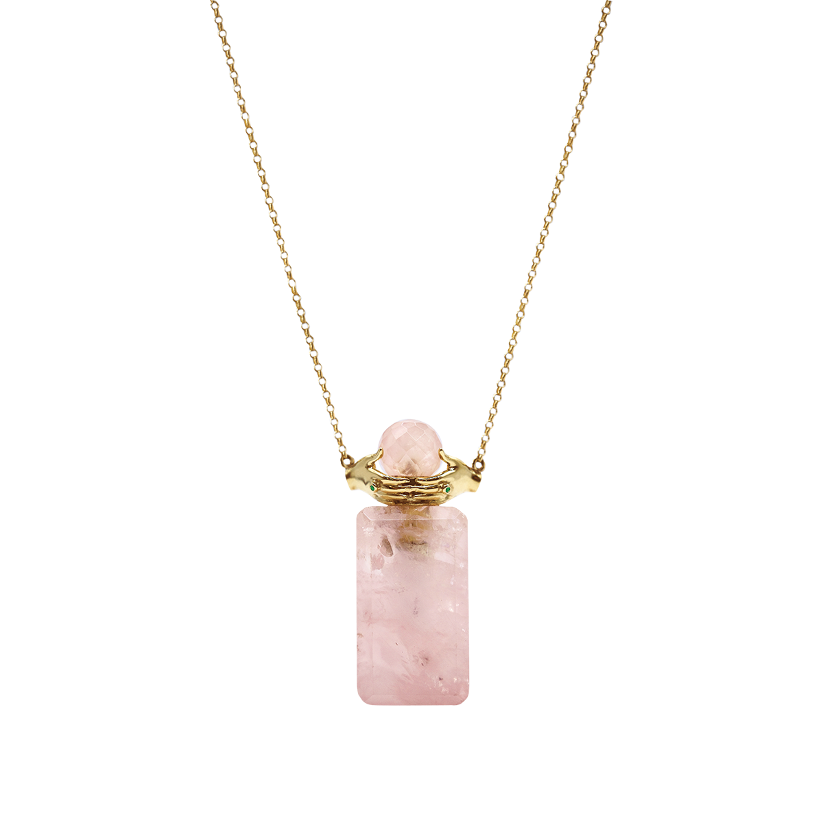 ネックレス(18K×ローズクオーツ×エメラルド)¥1,210,000/パオラ ヴィラス(エイチスリーオー ファッションビュロー)