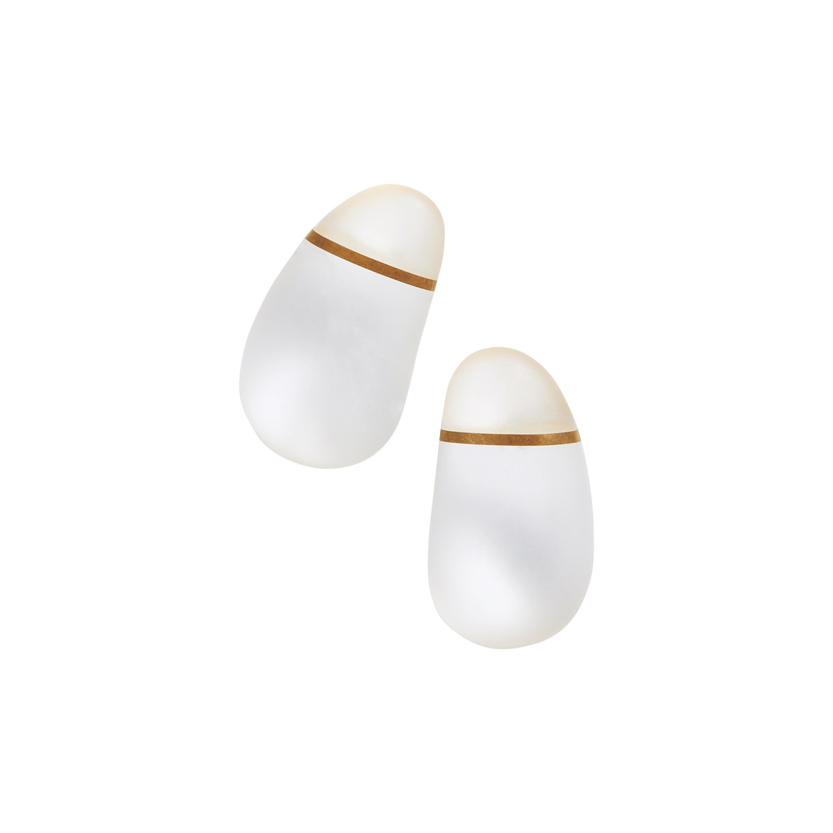 「旅する宝石商」と呼ばれるボロロは、世界各地で宝石を収集。石を切断して18Kのプレートを挟んだモダンなピアス。