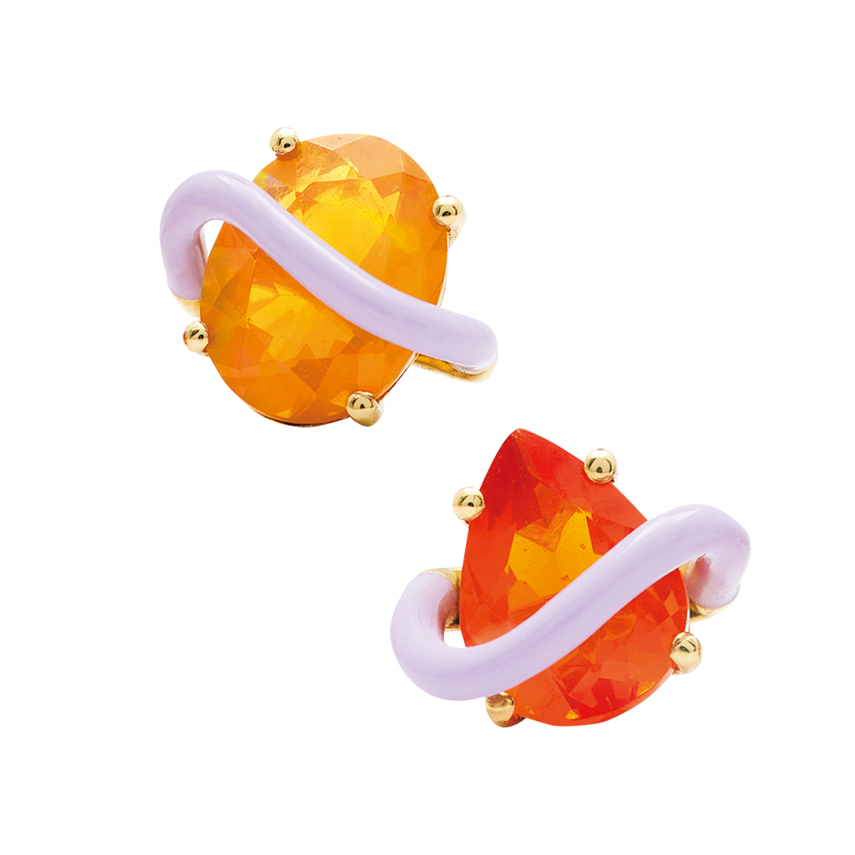 片耳ピアス上から、(18KYG×エナメル×オパール)、(18KYG×エナメル×ファイアオパール)各¥242,000/ともにベア・ボン ジャスカ(シハラ ラボ)