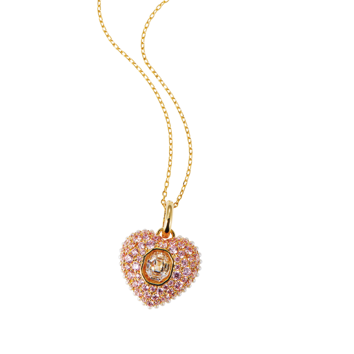 立体感あるチャーミングなハートモチーフの中央にはオクタゴンシェイプのダンシングストーンが。