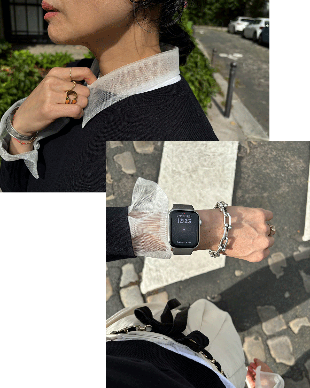 とある編集者に「色のあるスタイリングをするところが想像できない」と言われたくらい地味でした。その代わり、シャツの襟やカフスなどには自分なりのこだわりがあって、今でもディテールに技が効いてるアイテムに惹かれます。私にとって遊びの効いたフレンチシックは、常に身近にあるものという感覚です。