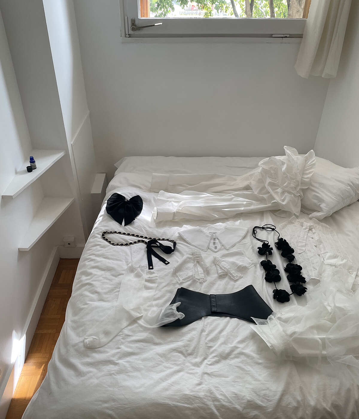 レースやフリル、チュールのような繊細なものに惹かれます。この仕事に就いてから、幅広いフレンチシックの中でもロマンティックな部分に夢中になりました。とはいえ、甘過ぎるのは苦手なので、私服はほぼパンツスタイル。ヴィンテージレースに関しては、数百年前に紡がれたものを、現代のスタイリングで昇華させて頂きます!という意気込みも少しあります。破れてもかがって、汚れても紅茶で染めて……、手入れをする度に愛が増していく気がします。