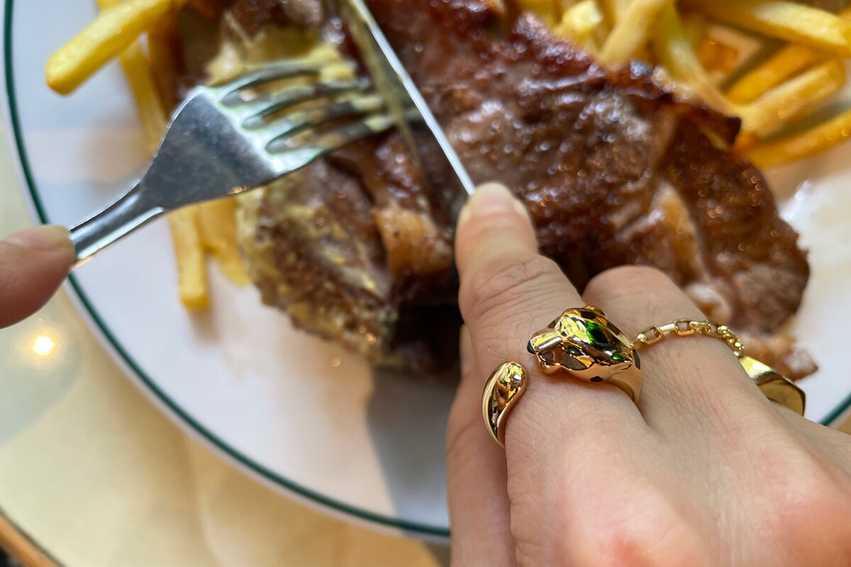 最近、動物モチーフのジュエリーが気になっています。ティファニーやカルティエなど、歴史ある宝飾品の回顧展には必ず足を運びますが、以前はスカラベやトンボなどのモチーフジュエリーを見ても御守りや縁起などの意味があるとは言え、私にとっては、はて?という感じでした。でも、東京の老舗ホテルやパリのカフェなどで遭遇するおばあさまの手元を見ると、迫力のある動物モチーフのジュエリーが鎮座している事が多い。皺が刻まれ、節くれだった深みのある手にマッチして、さりげなく主張しているのです。私も50歳をすっかり超えて、いよいよ来たぞ、と思ってます。狙っているのはカルティエのパンテール。手に入れられたら一生の宝物です。