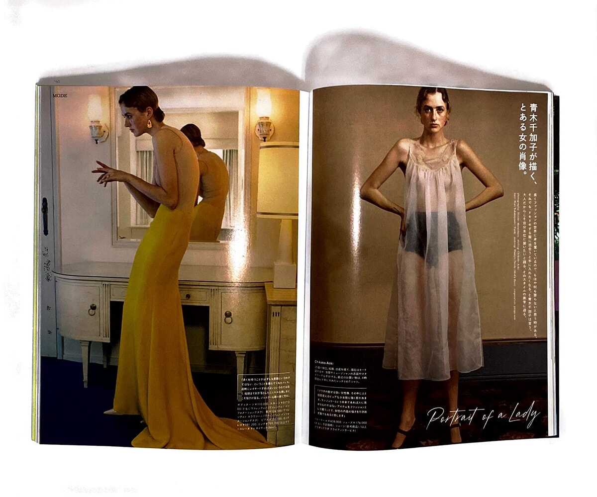 モード誌やファッションブランドのヴィジュアル制作、広告、CMを手がける一方、俳優やミュージシャンの衣装にも携わるなど、長きに渡り幅広く活躍中。「2025年はアシスタント募集します!」@chikako_aoki