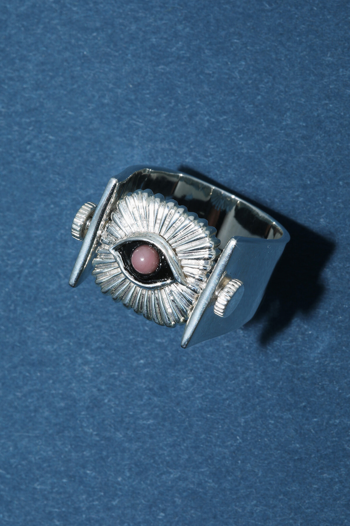 トーガが、ブランド史上初となるシルバーと天然石を組み合わせたアクセサリーをリリース。アイモチーフのリングやピアス、ウェスタンブーツや猫のチャームがついたネックレスなどがラインナップする全12型のカプセルコレクションで、アクセサリーブランドのイー・エムとタッグを組んで形にした。トーガらしいキッチュなデザインが、スタイルのアクセントとしてさりげなく煌めく。