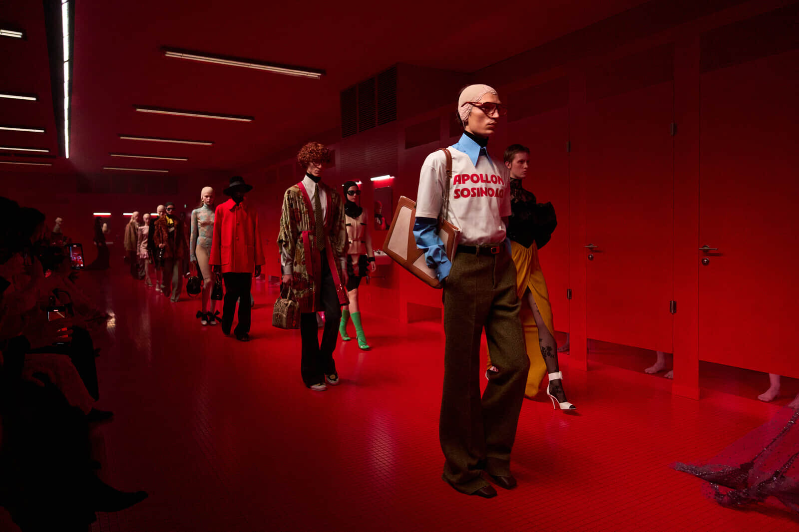 アレッサンドロ・ミケーレは「親密さ」をひとつの曖昧で多層的な概念として捉え、公衆トイレを例に挙げ、公衆トイレを模した会場で発表した。トイレは「内と外」、「隠されるものと露わになるもの」、「個人的なものと集団的なもの」といった反する要素が共存し、転じて親密さの本質を示す空間だと言う。会場は真っ赤に染まり、性別にとらわれない空間のようであり、まるでデヴィッド・リンチの映画のようなディストピア的で心をかき乱す場所。