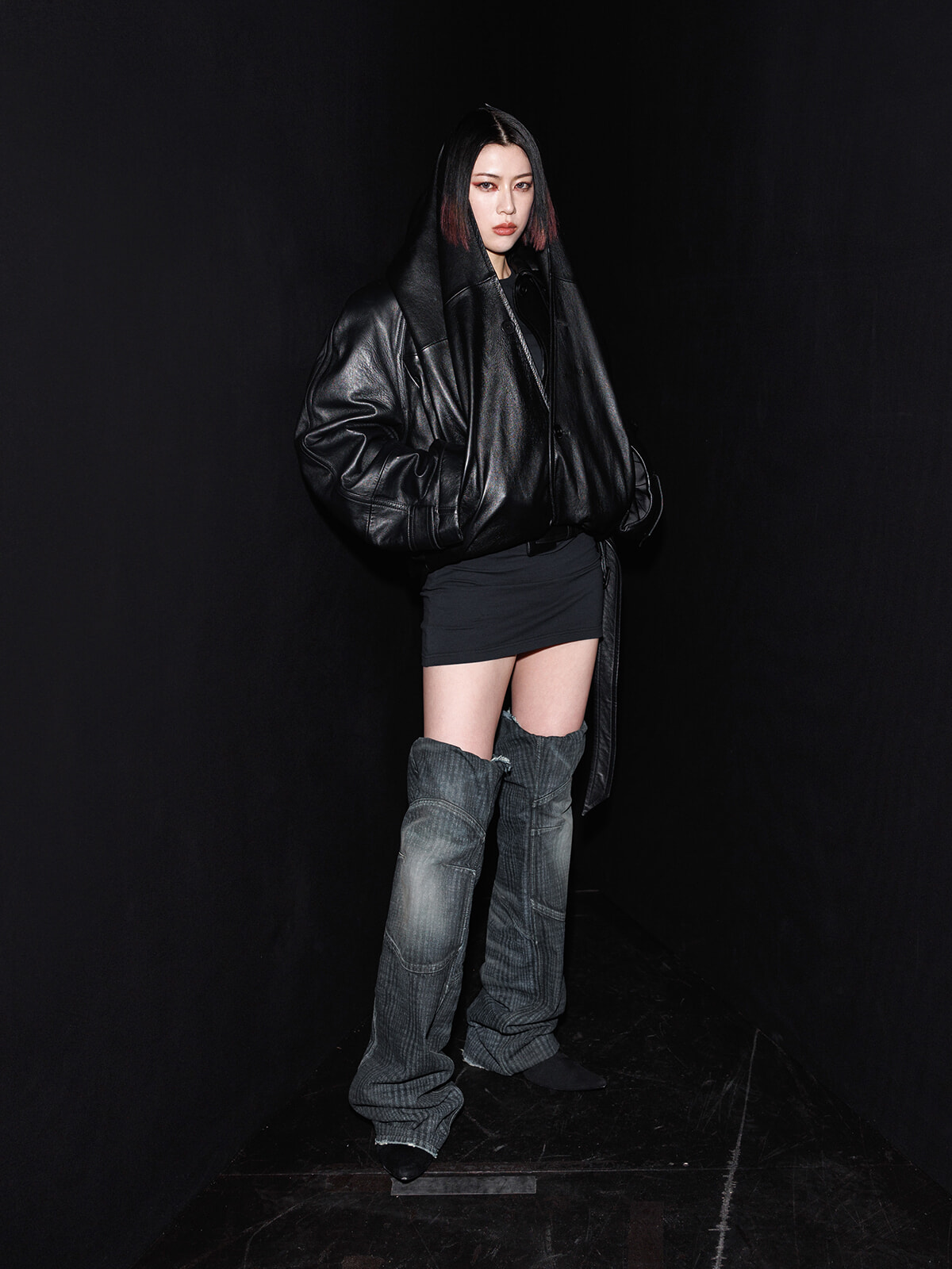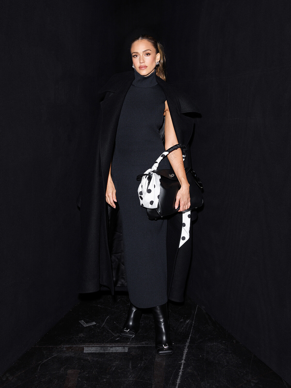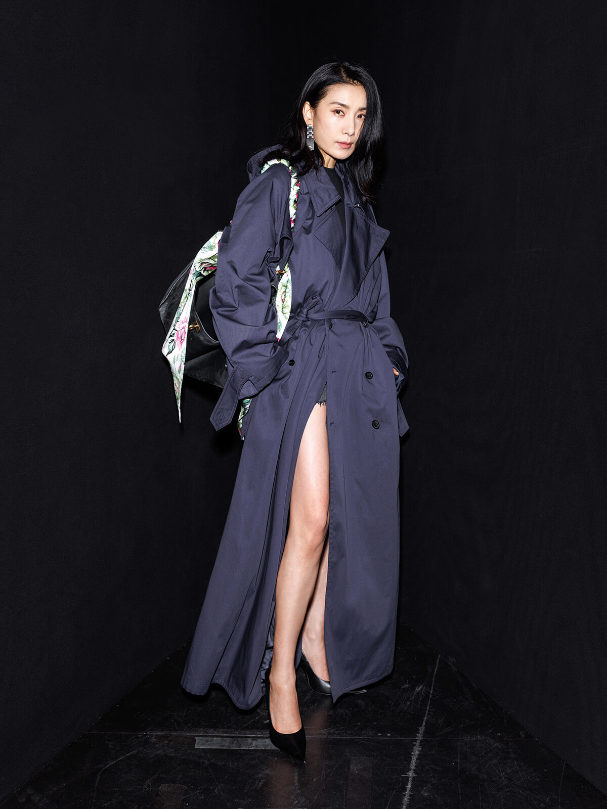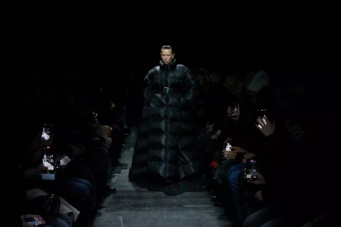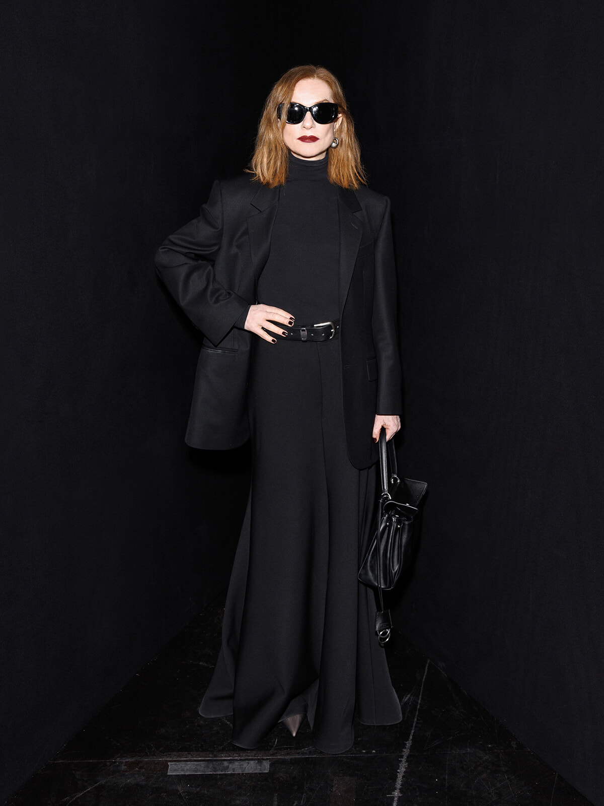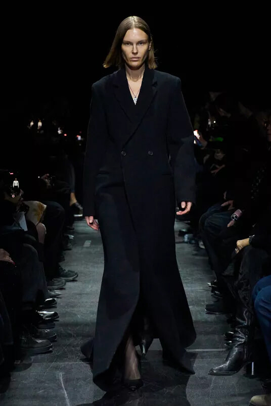 バレンシアガのショーでは誰もが最前列の特等席に座った。バレンシアガのアンバサダーであるイザベル・ユペールや、ジェシカ・アルバ、THE BOYZのジュヨン、キム・ソヒョンらと並んで、すべての観客が同じ立場でコレクションを目撃するのだ。しかし、会場では、誰もお互いの姿を確認することはできない。アンヴァリッド前に設置された白いボックスの中には、巨大な黒い迷路が広がり、自分のエリアから一歩でも踏み出せば、簡単に迷い込んでしまうような構造だ。