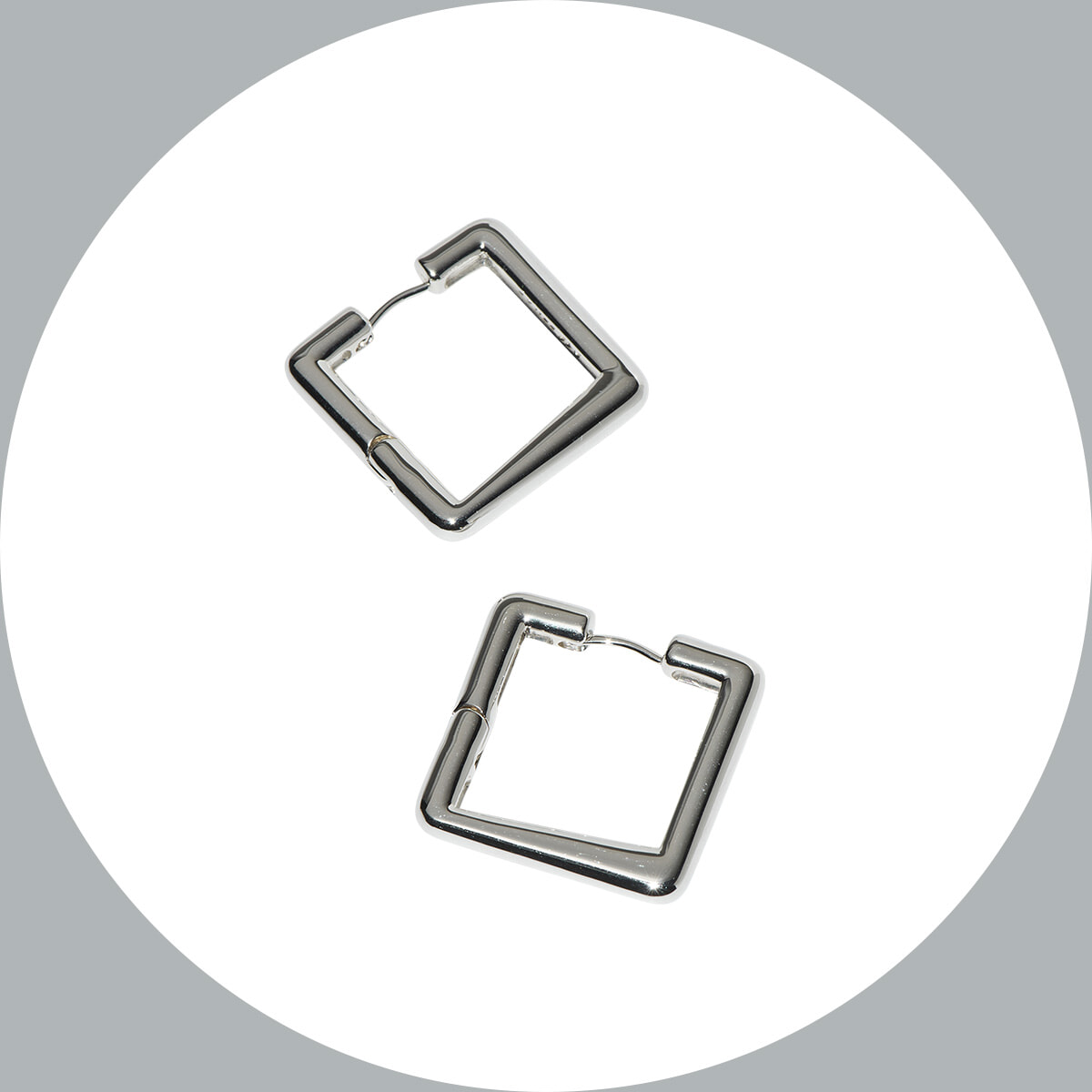 シルバーとスクエア、どちらも兼ね備えたフープピアスで運気アップ。どの角度から見ても美しいクリップボールドタイプ。