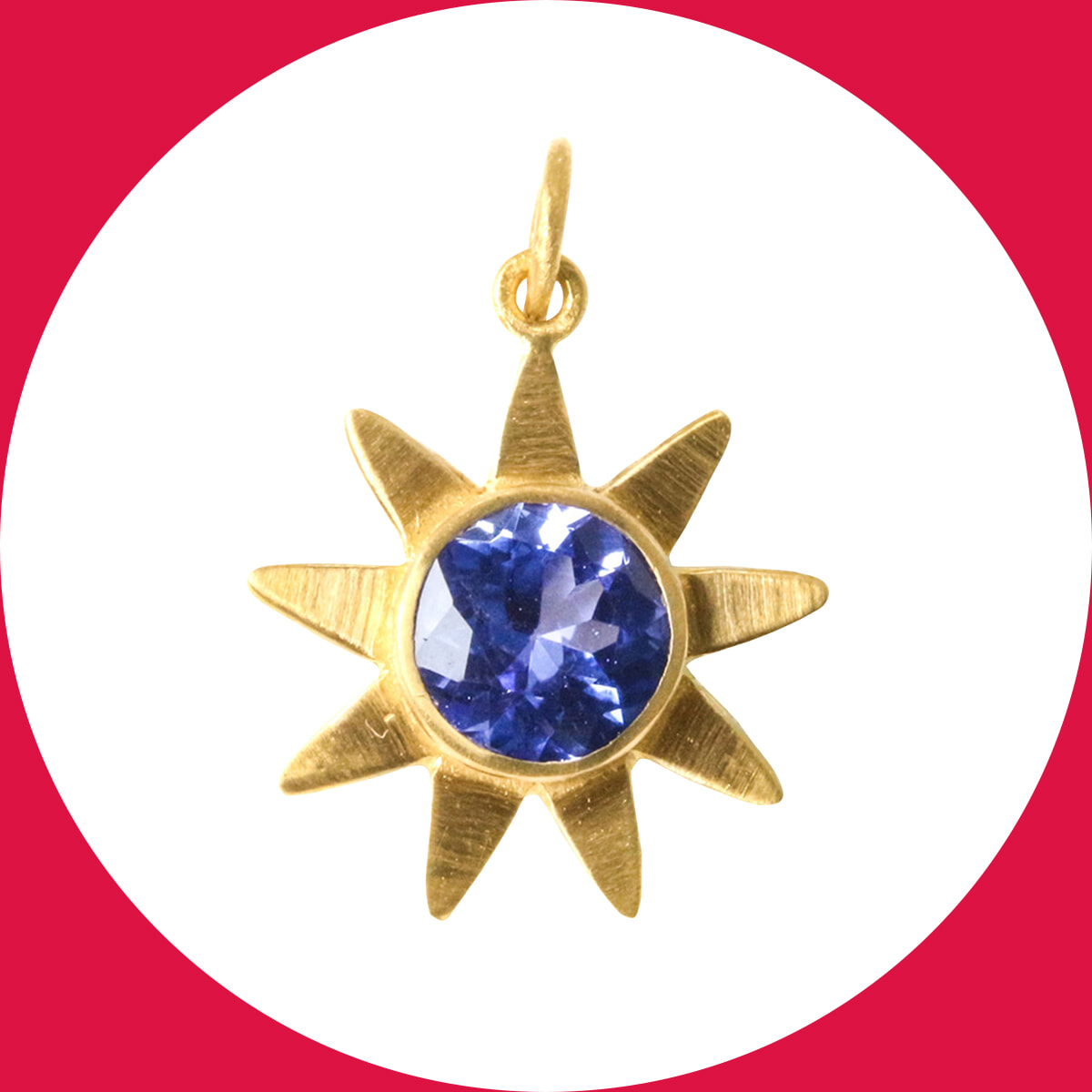 明るく照らす太陽モチーフと知的な輝きを放つタンザナイトの組み合わせ。首元からエネルギーを放って。