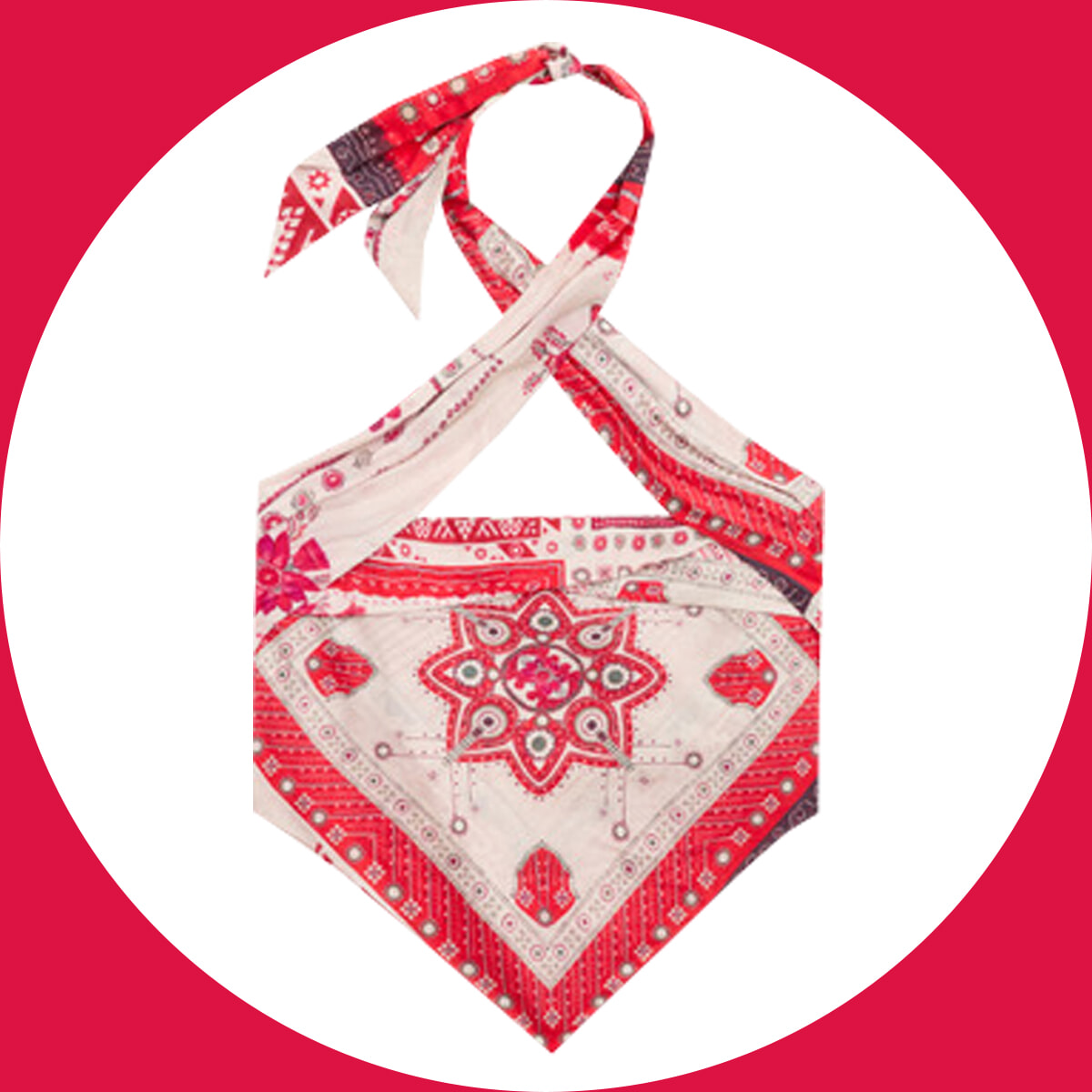 強めなイメージのあるレッドも、バンダナ調のバンドゥなら取り入れやすい。一枚でもレイヤードでもアレンジの効くのが嬉しい。