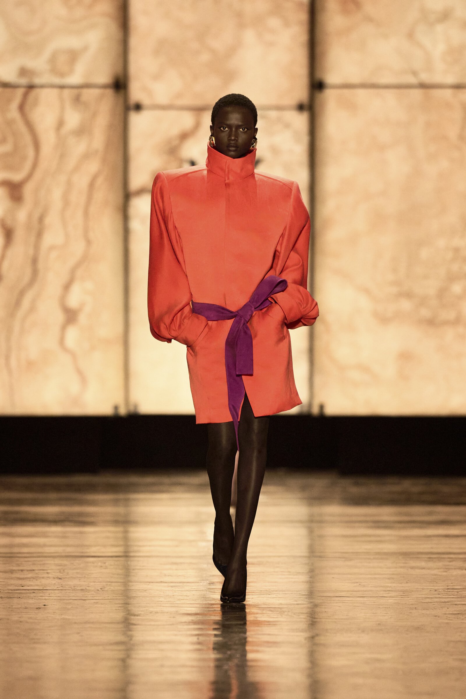 サンローランが追求する理想形とは、少ない筆数で描いたようなシンプルなシルエット。今回の2025年冬ウィメンズコレクションはクリエイティブ・ディレクターのアンソニー・ヴァカレロがその精神を忠実に受け継ぎ、クリエイティビティを発揮した。コレクション全体は、サンローランならではのモダンなカラーパレットで構成され、力強いルックが並んだ。
