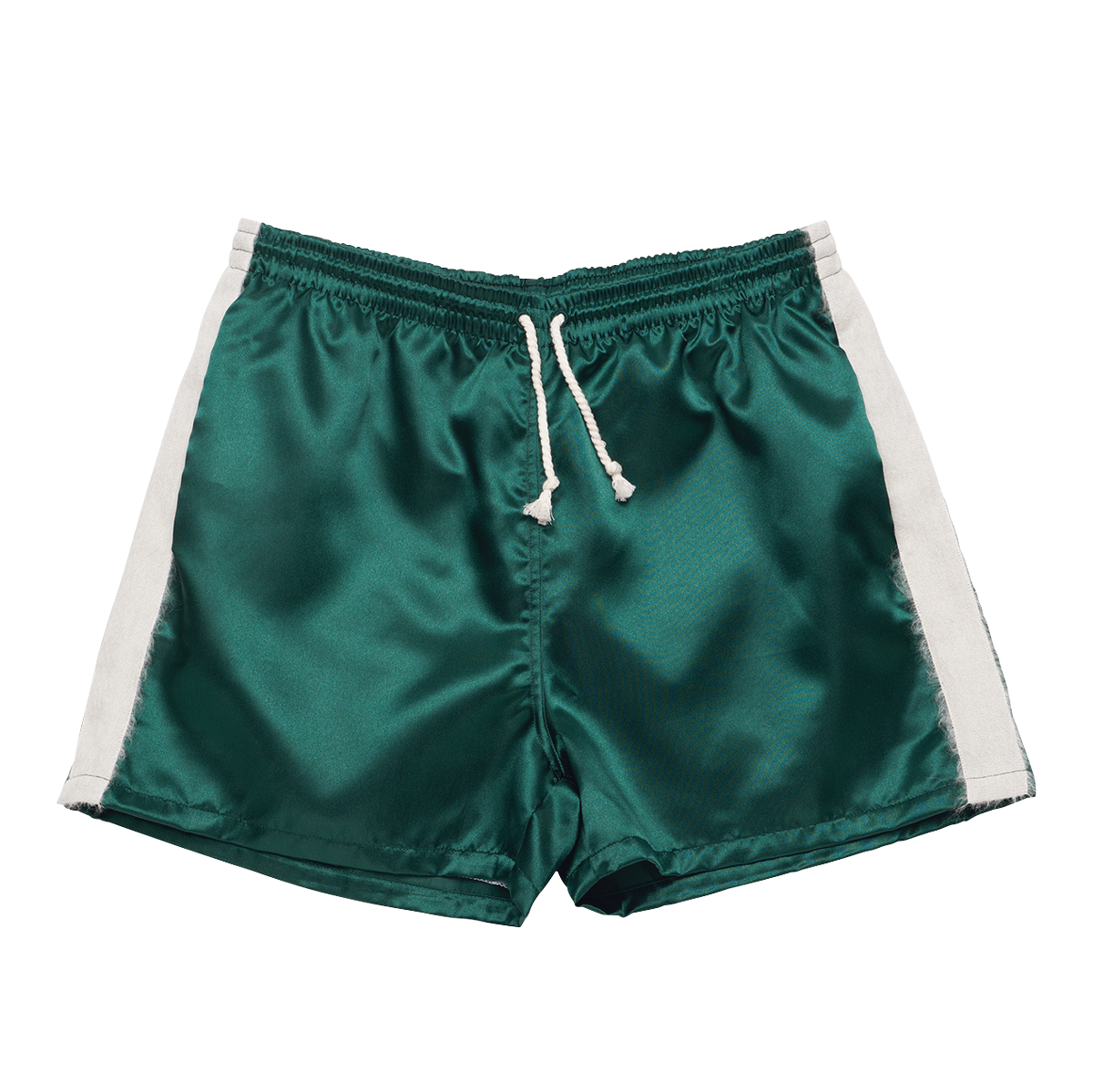 艶やかなナイロン素材がクールなフットボールショーツ。カジュアルになりすぎない秘密は、サイドについた白のモヘア素材のウェビングテープ。モダンなスポーツミックススタイルにトライして。