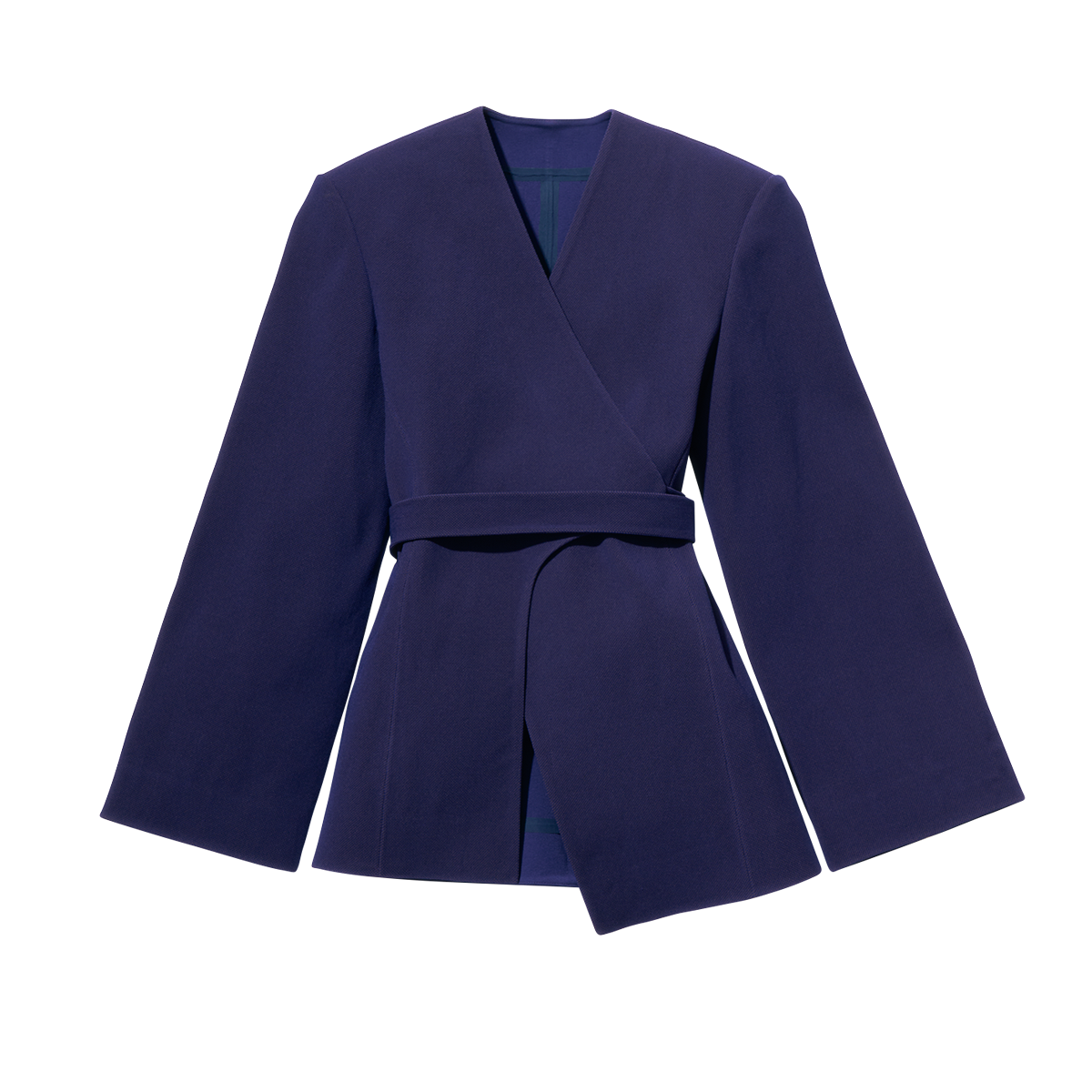 スポーツエッセンスを取り入れた25年春夏コレクション。ハリのある素材とシルエットが特徴のミニマルなジャケットは、柔道着からインスパイアされたそう。ウエストマークでエレガンスをプラスして。