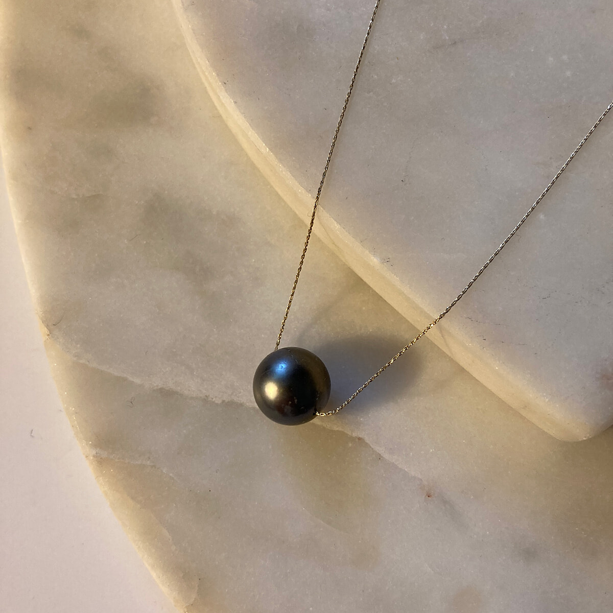 フィガロジャポン2023年7月号「楽園、タヒチの島々で過ごす休日。」で取材に行った時、現地の人たちが女性はもちろん、老いも若きも男子も!黒真珠の一粒ピアスを日常的に身につけているのが印象に残りました。その時、長いこと持っていたタヒチ土産の大玉の1粒を持参していて、タヒチ島のKermei(ケルメイ)でネックレスに加工してもらったのですが、以来、真珠との出合いとオーダーメイドの楽しみが続いています。